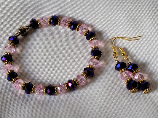 Artisan Pink & Purple Crystal Bracelet with Matching Earrings