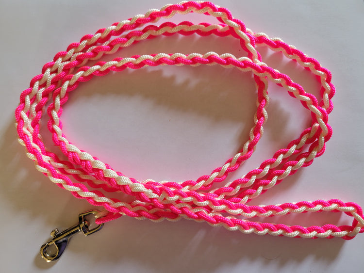 Paracord Braided Dog Leash Lead 5 1/2 ft (Bright Pink & White) Sm or Med Dog Training Walking