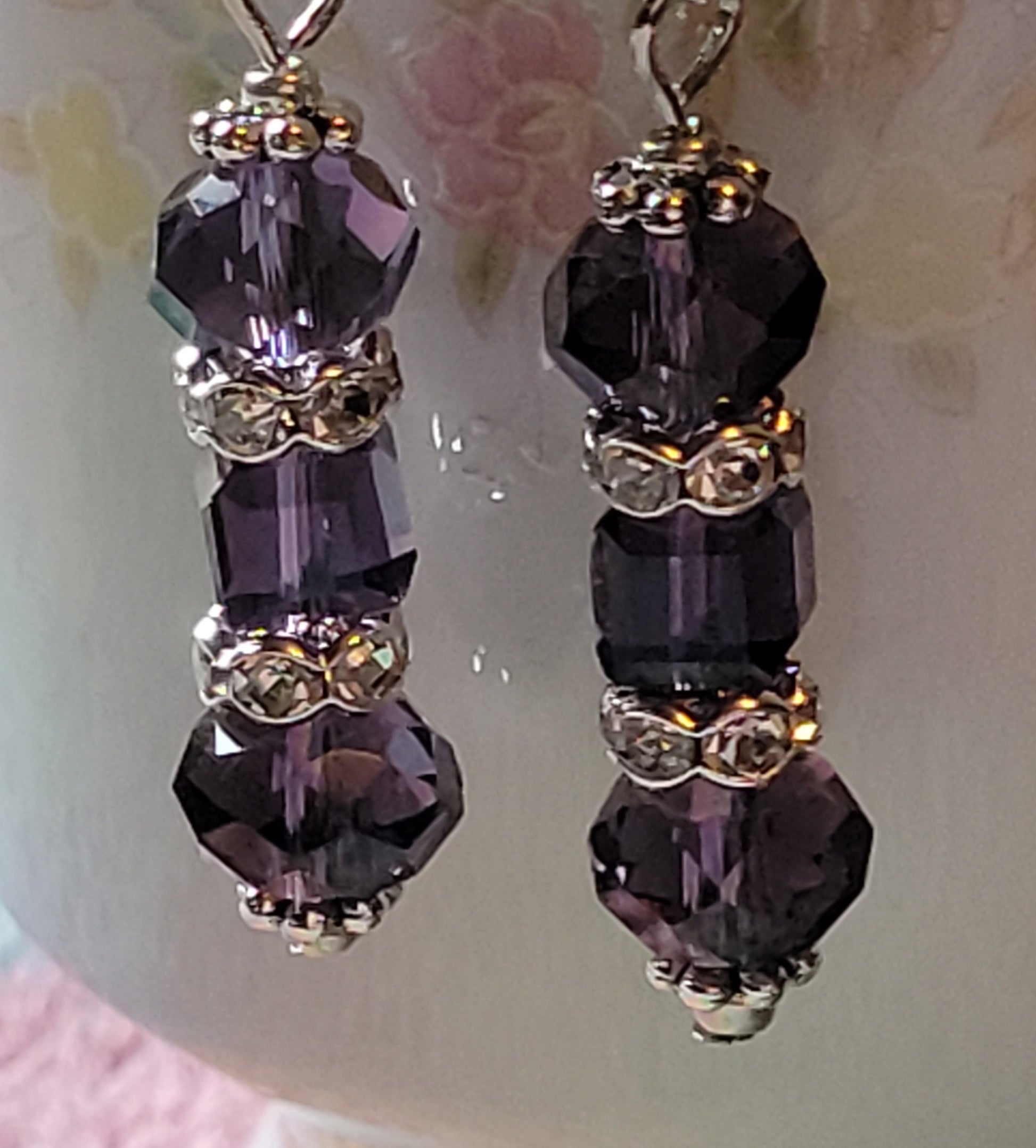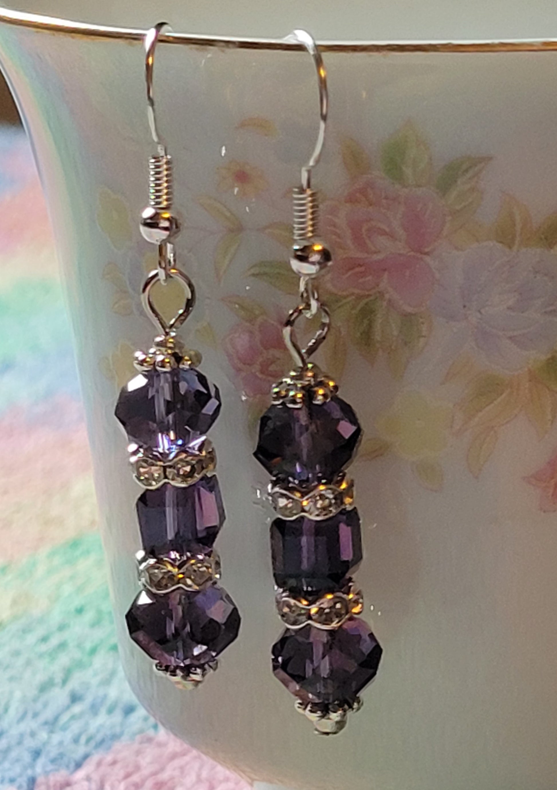 Elegant PURPLE Crystal bead Dangle earrings with oretry Rhinestone bead seperaters
