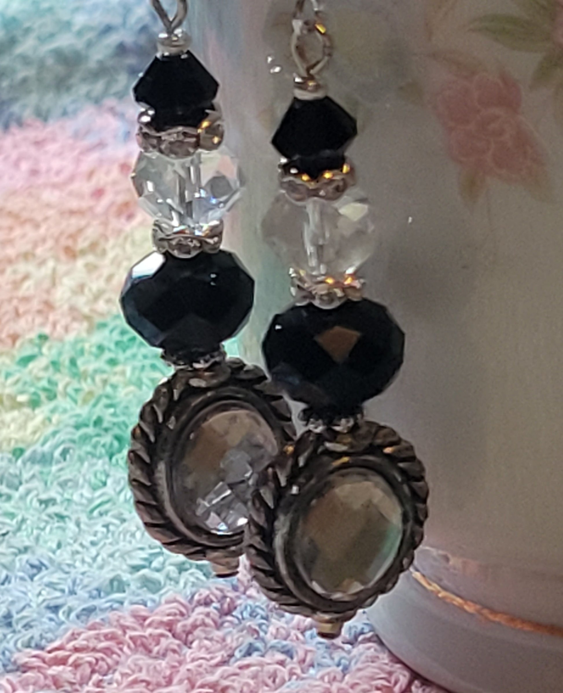 EXOTIC BLACK Crystal and Rhinestone bead Dangle earrings