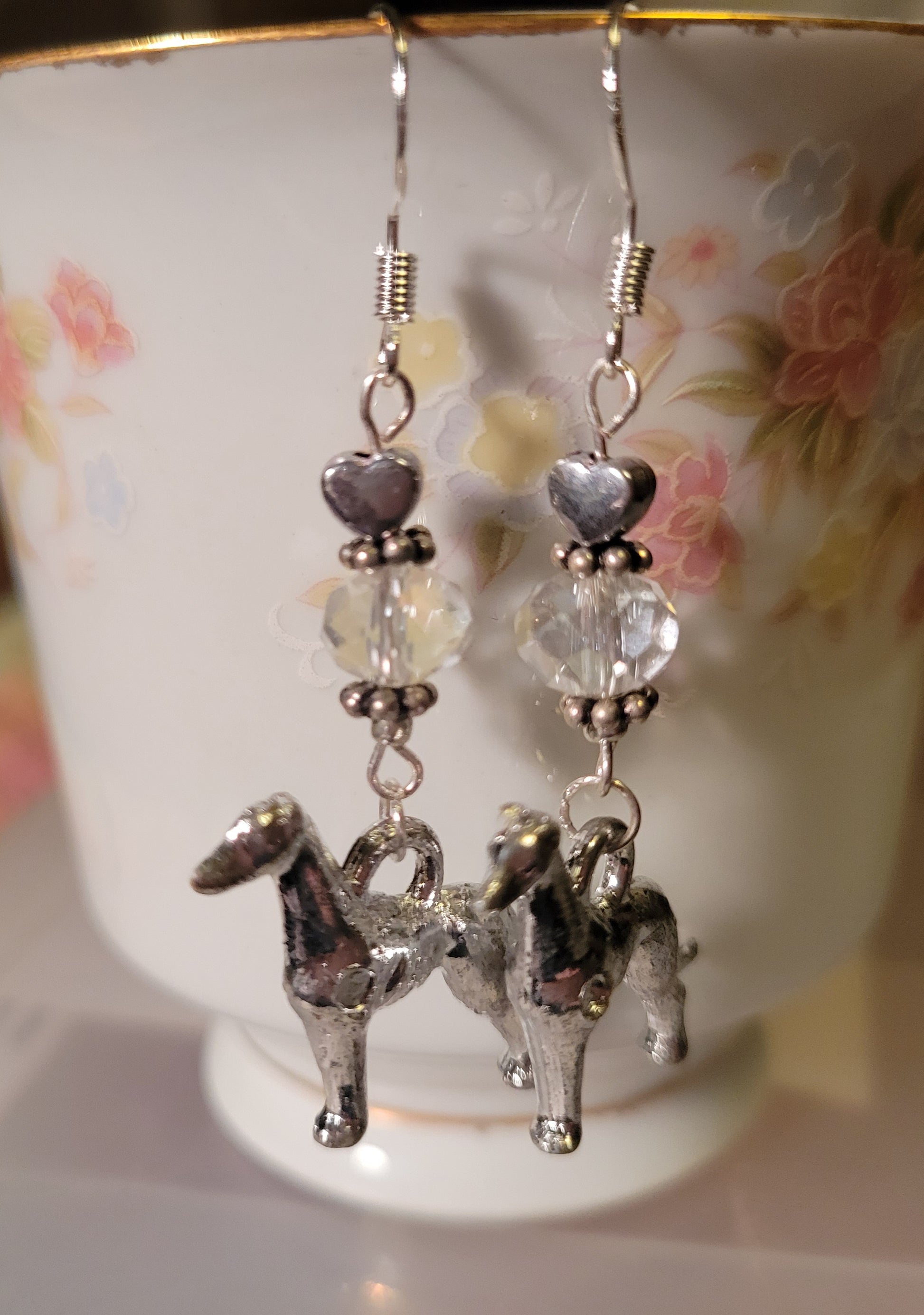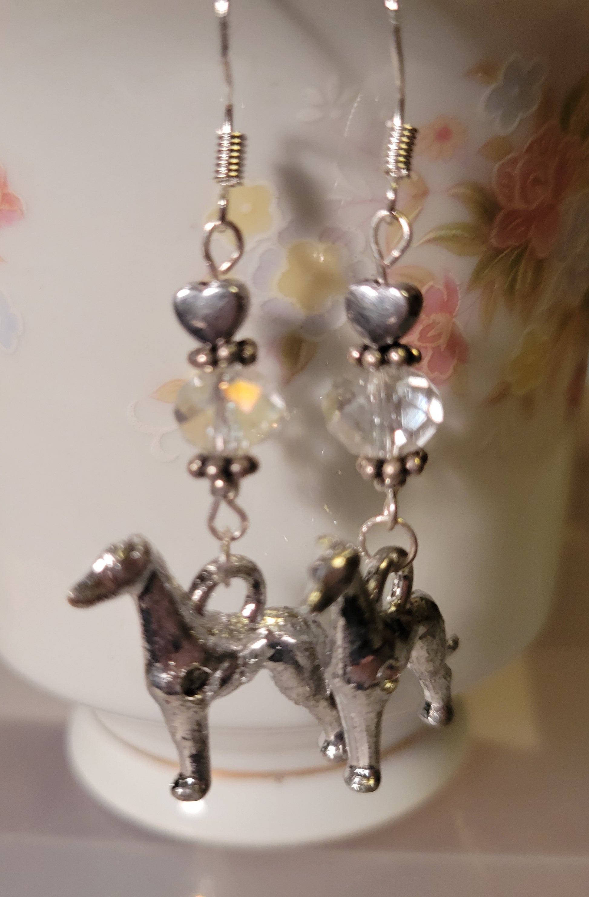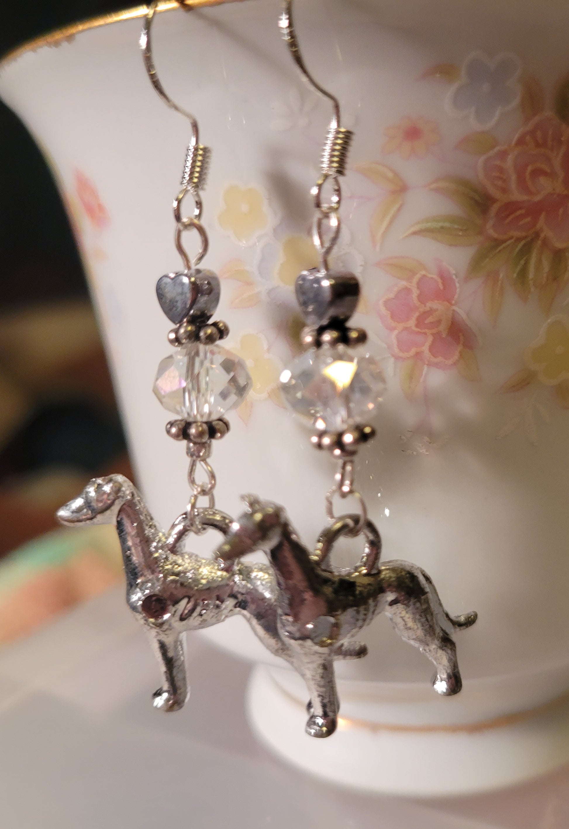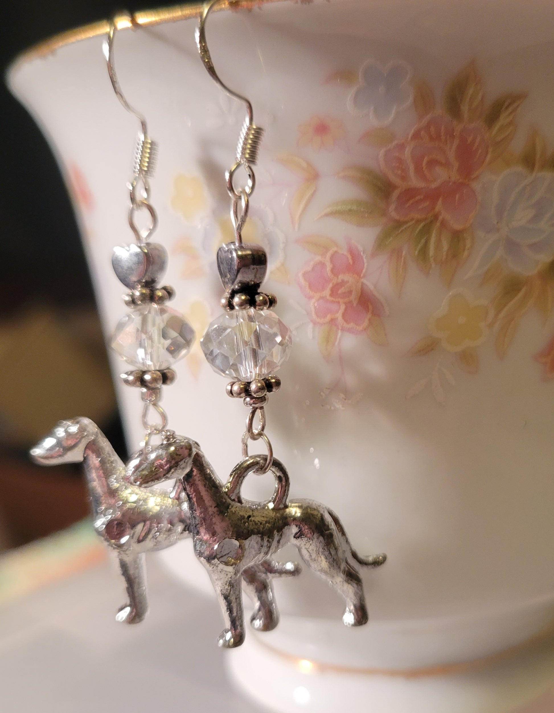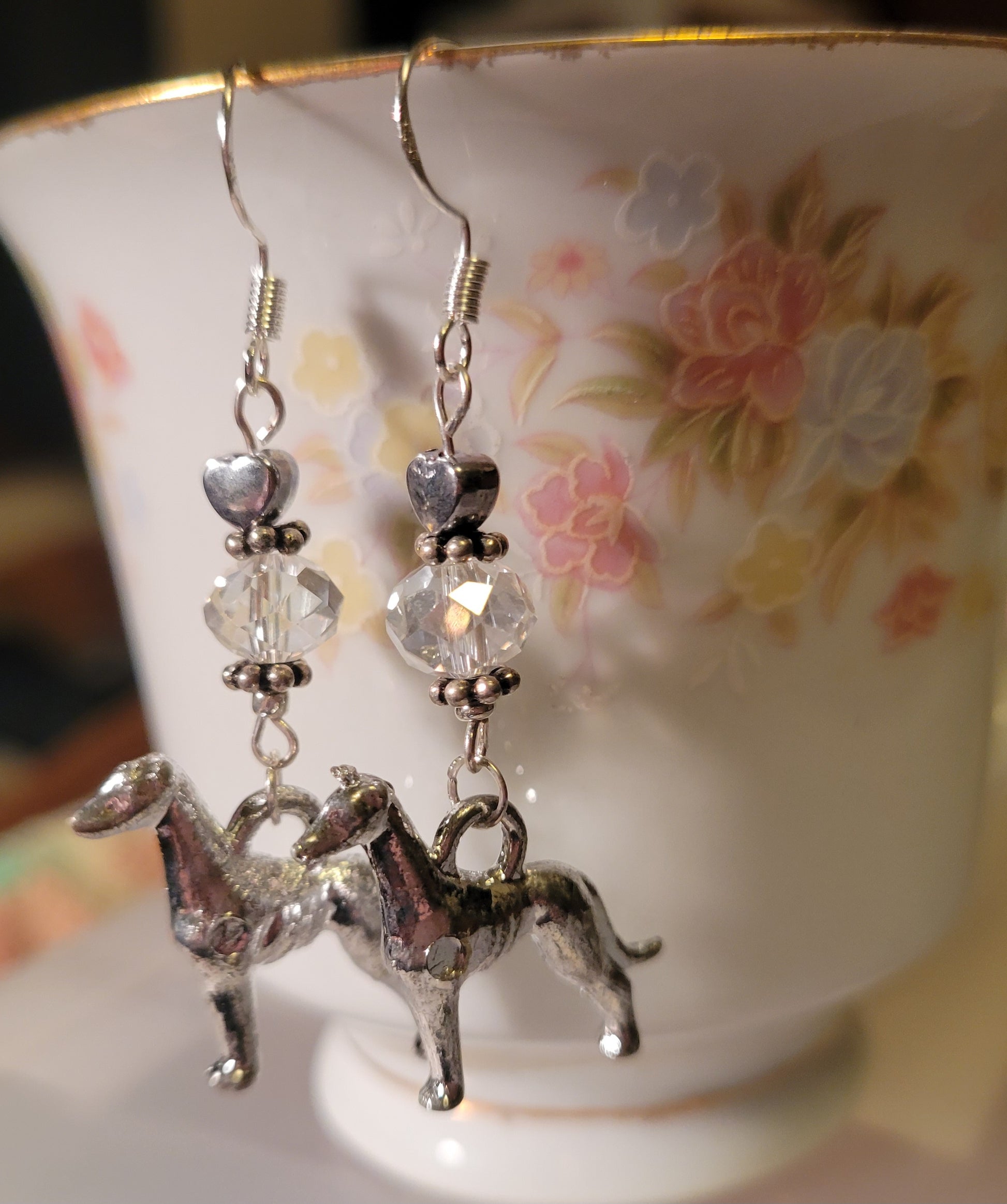 Artisan GREYHOUND Dog Breed Dangle Crystal Silvertone Earrings French Wires