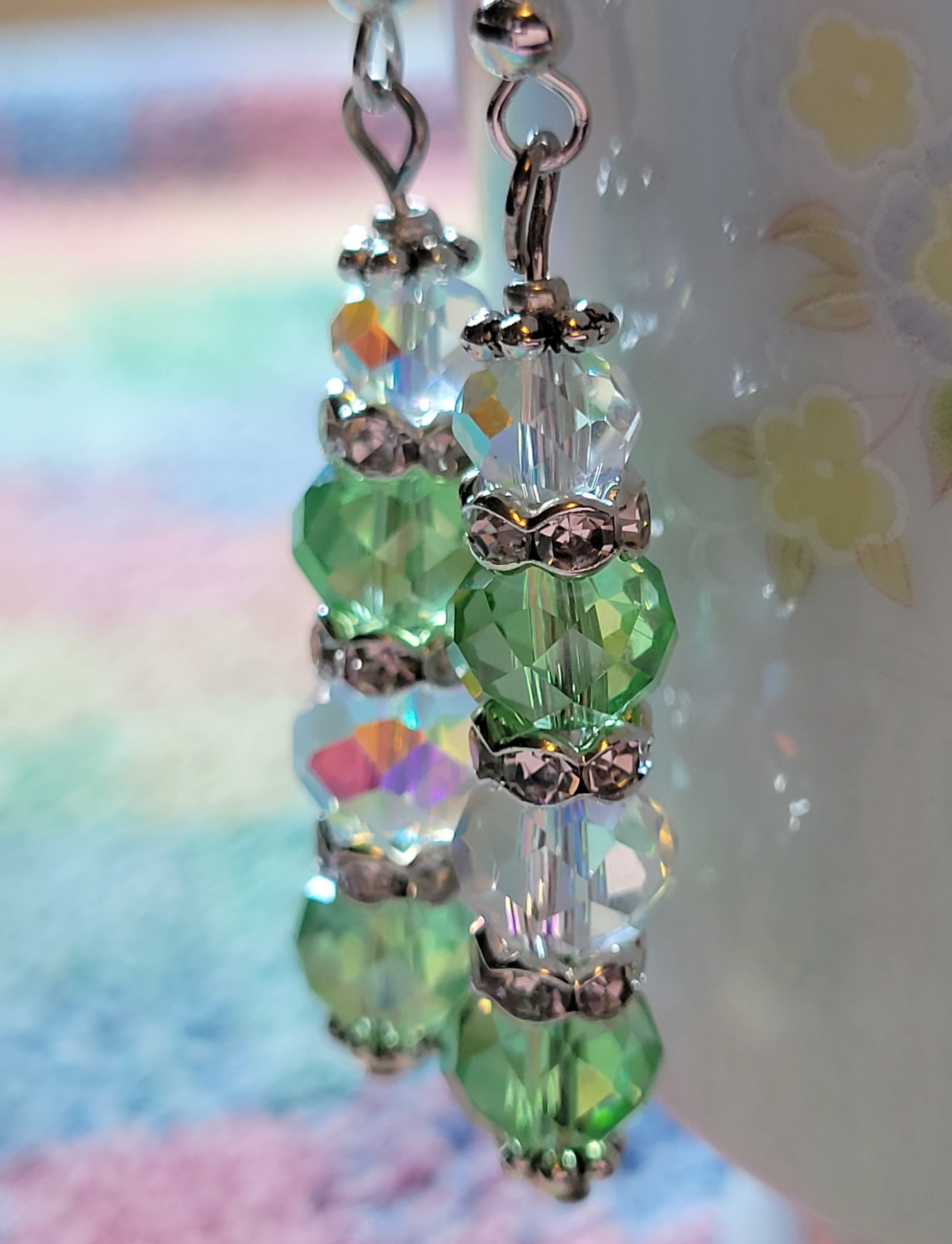 Artisan Light GREEN Crystal Dangle Silvertone Rhinestone Earrings French Wire