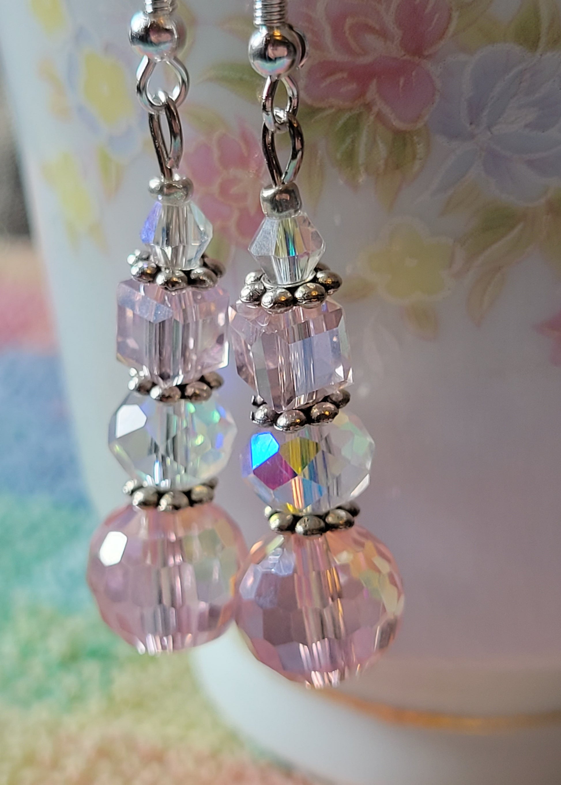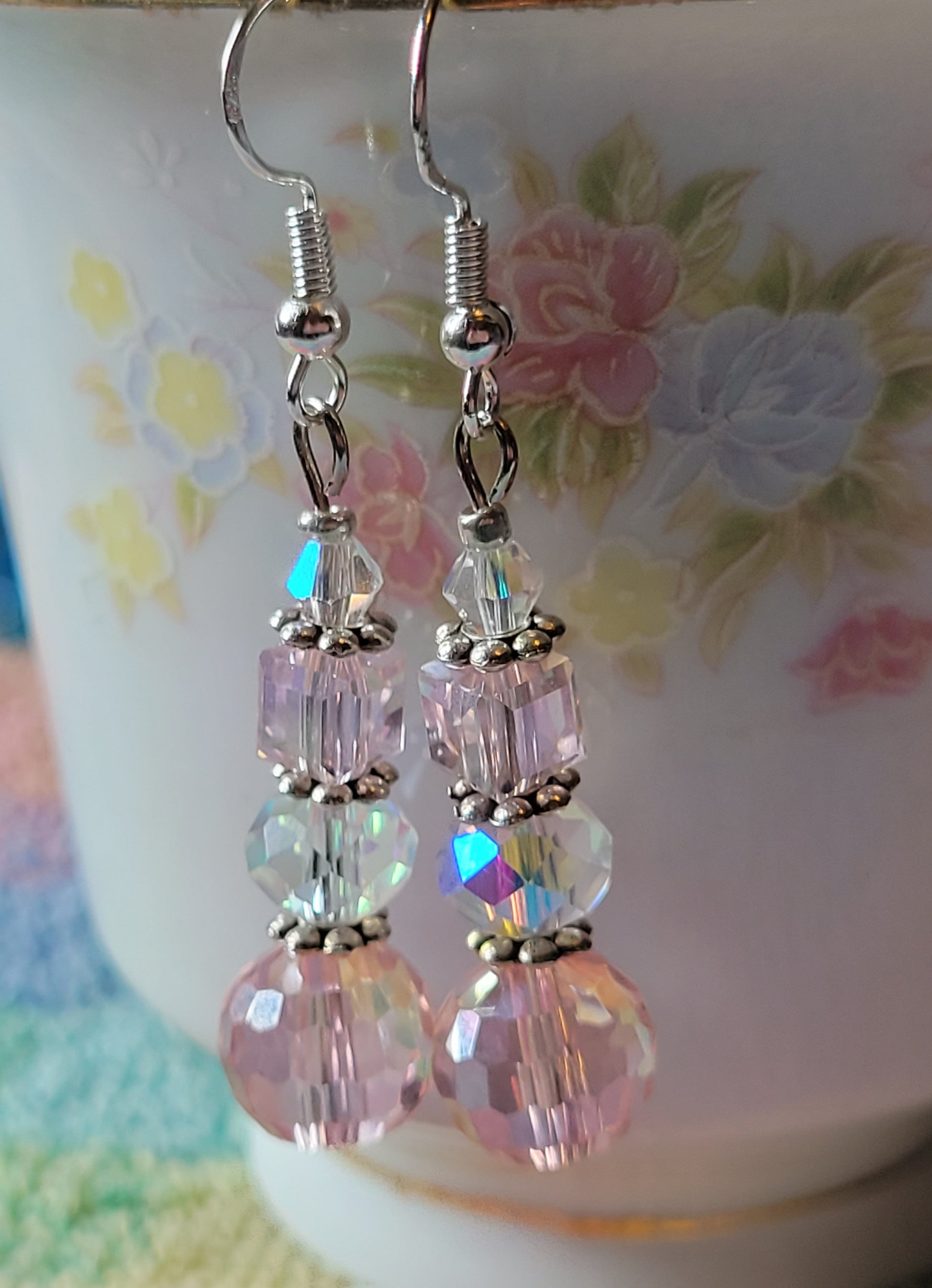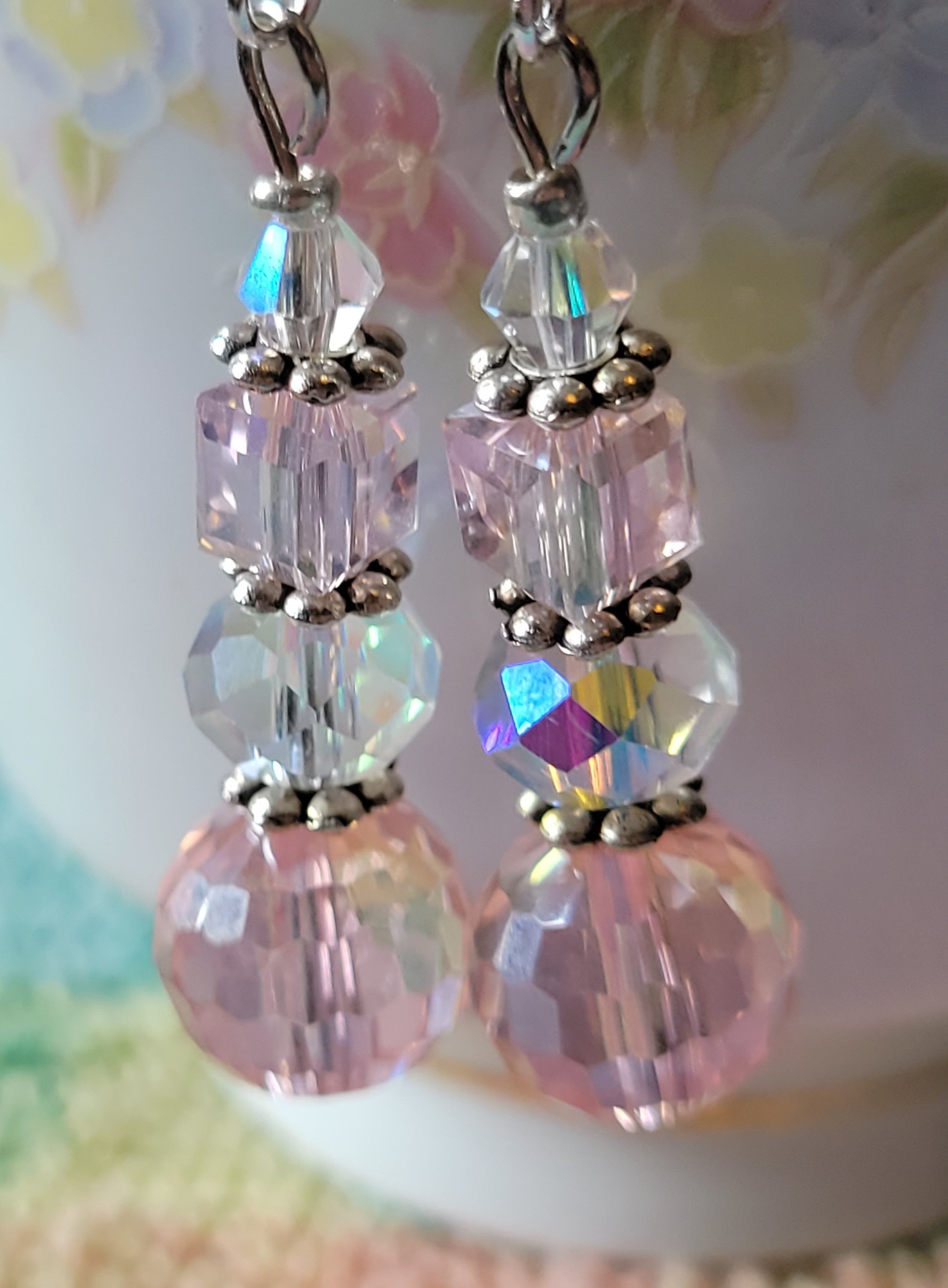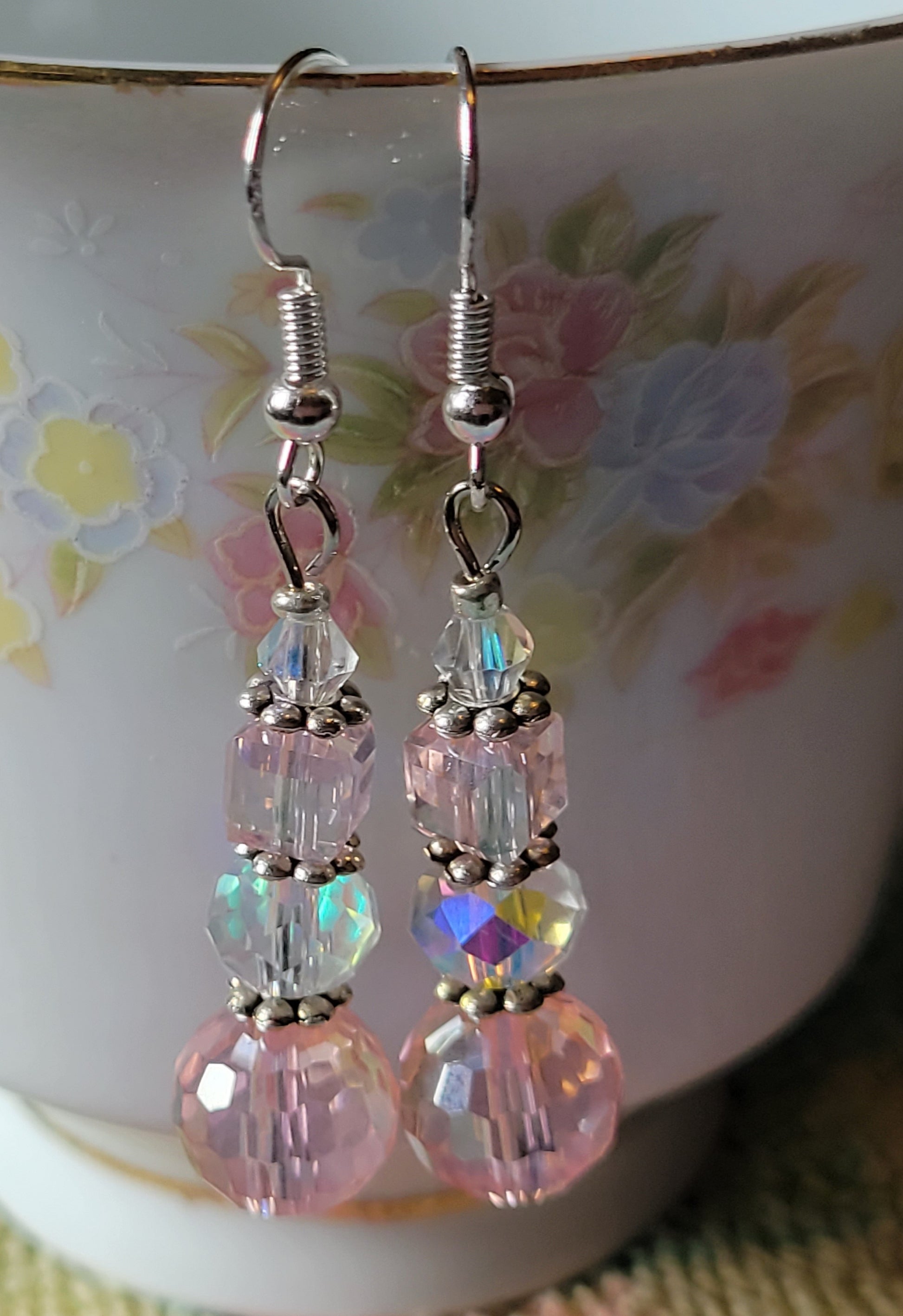 Very pretty Shiney Pastel Pink & Clear Crystal beads on French wire
