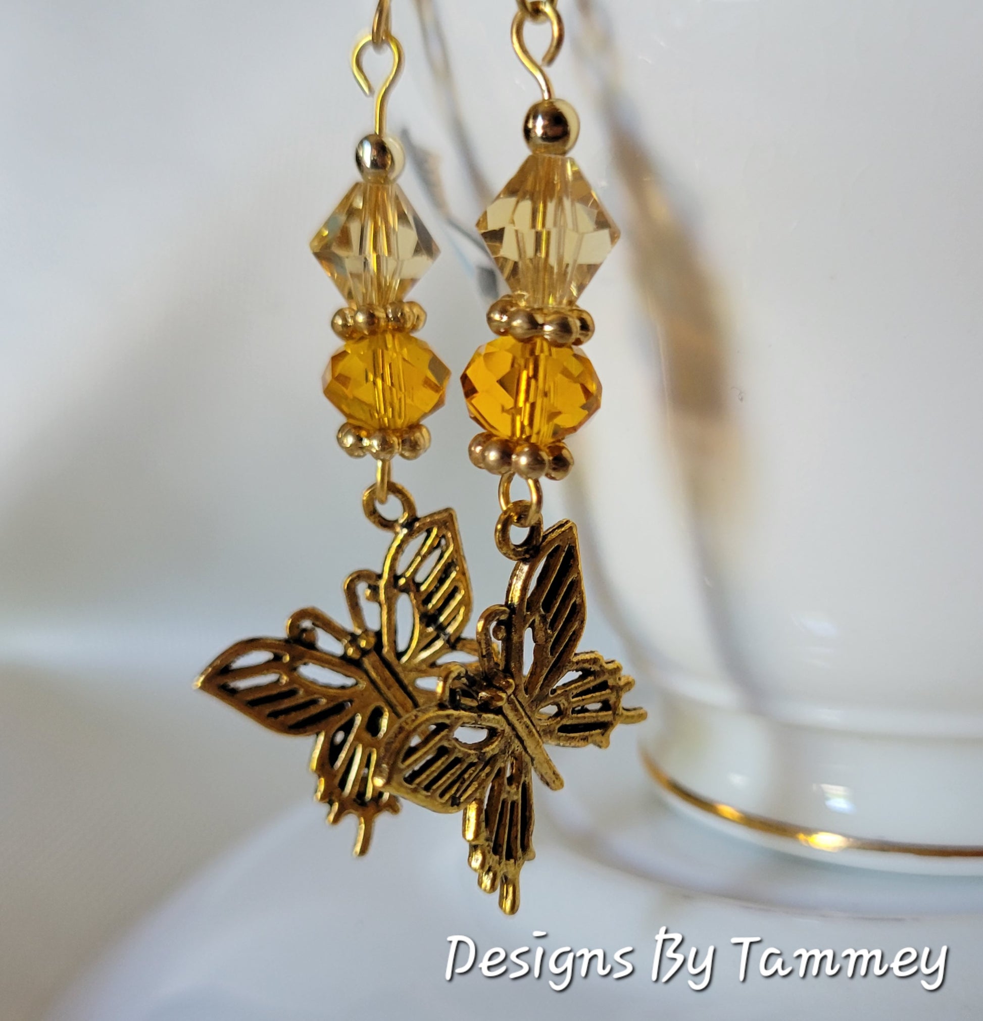 Goldtone BUTTERFLY 🦋 Crystal Long Dangle Fashion Earrings ✨️ OOAK