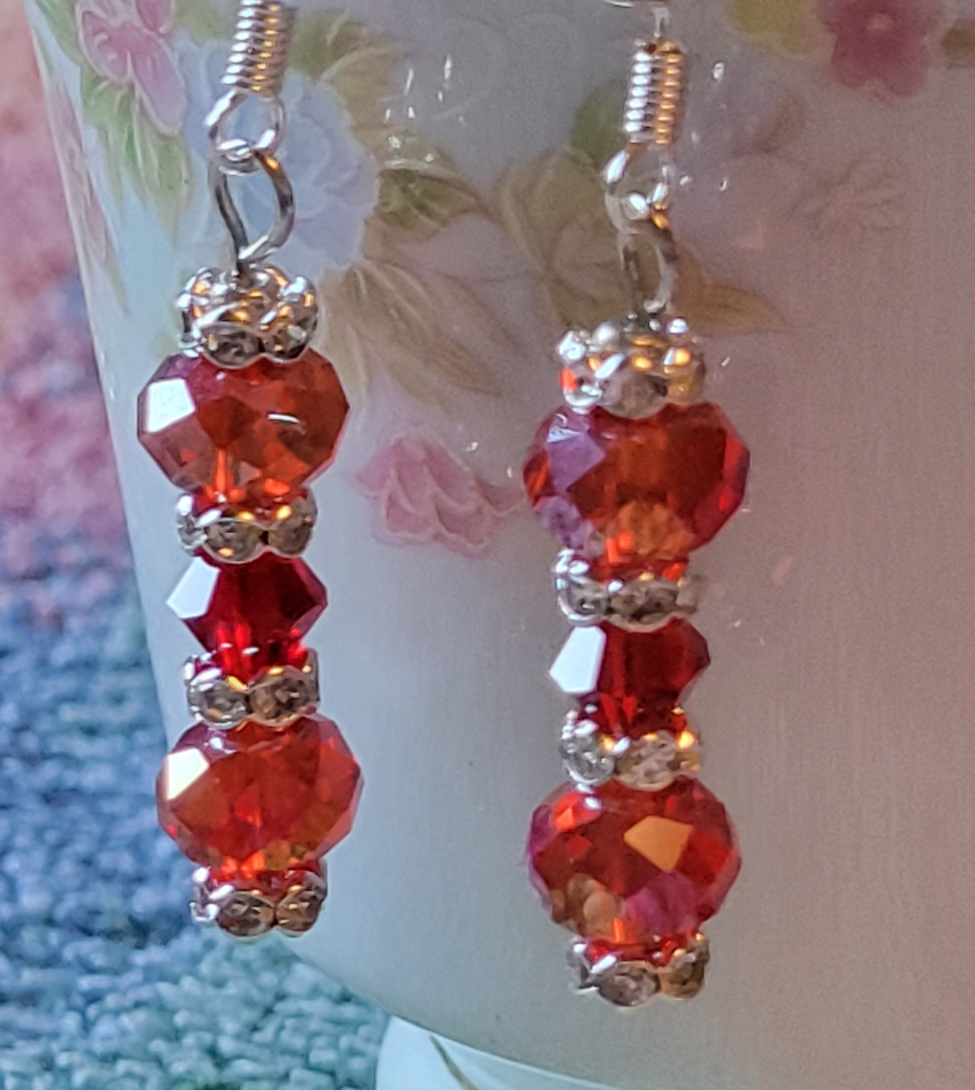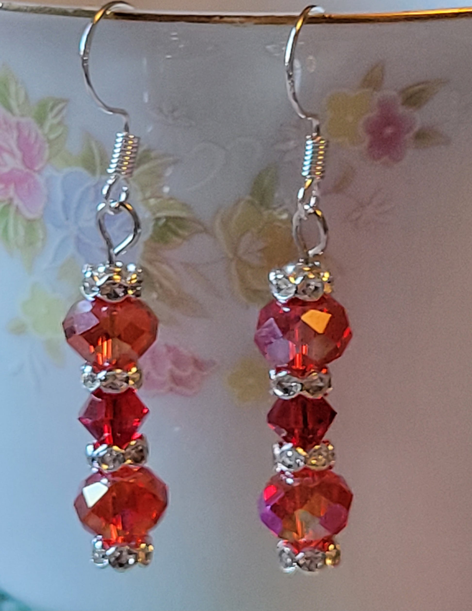 Artisan Elegant RED Crystal Dangle Drop Silvertone Fashion Earrings French Wire