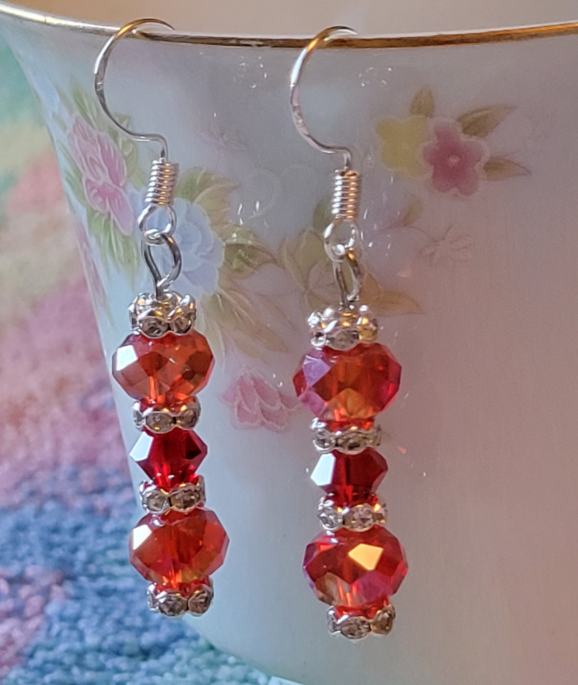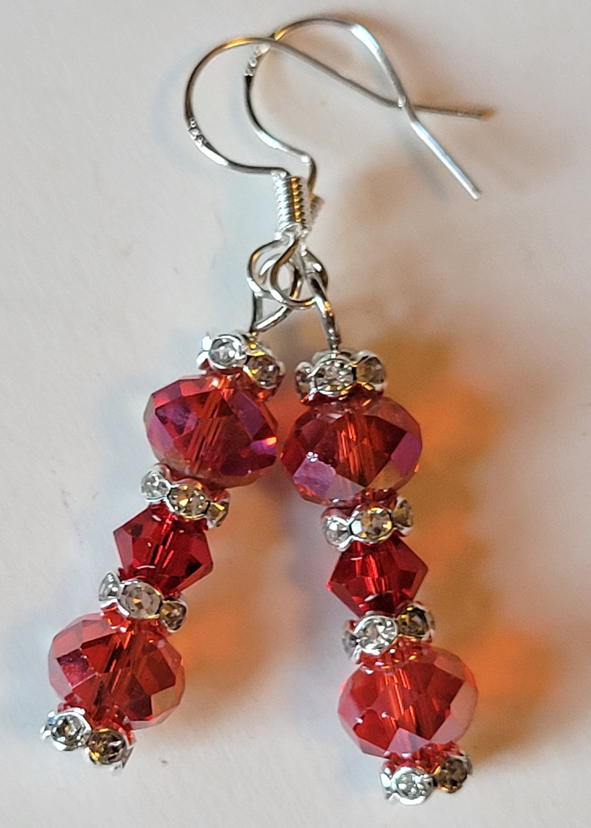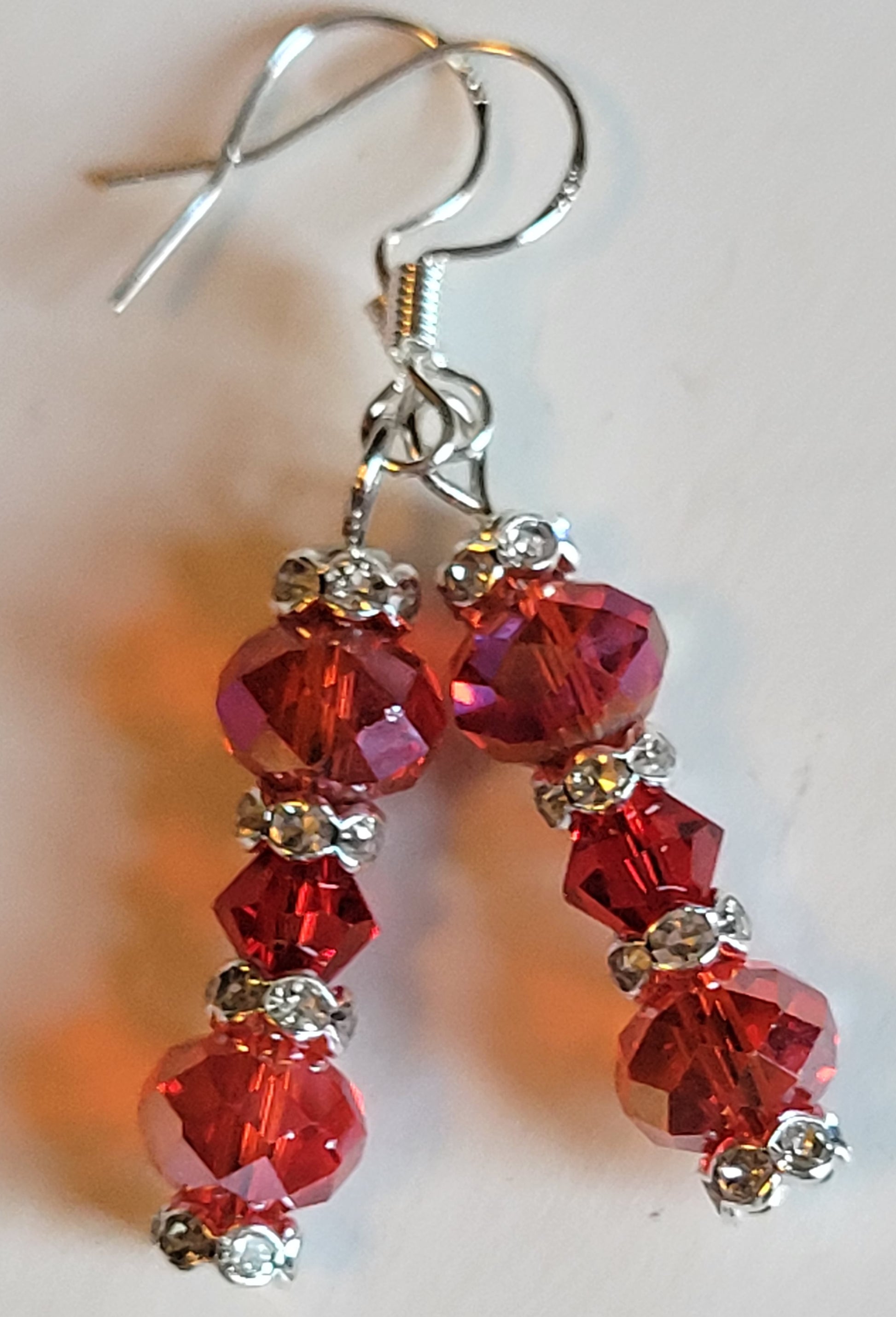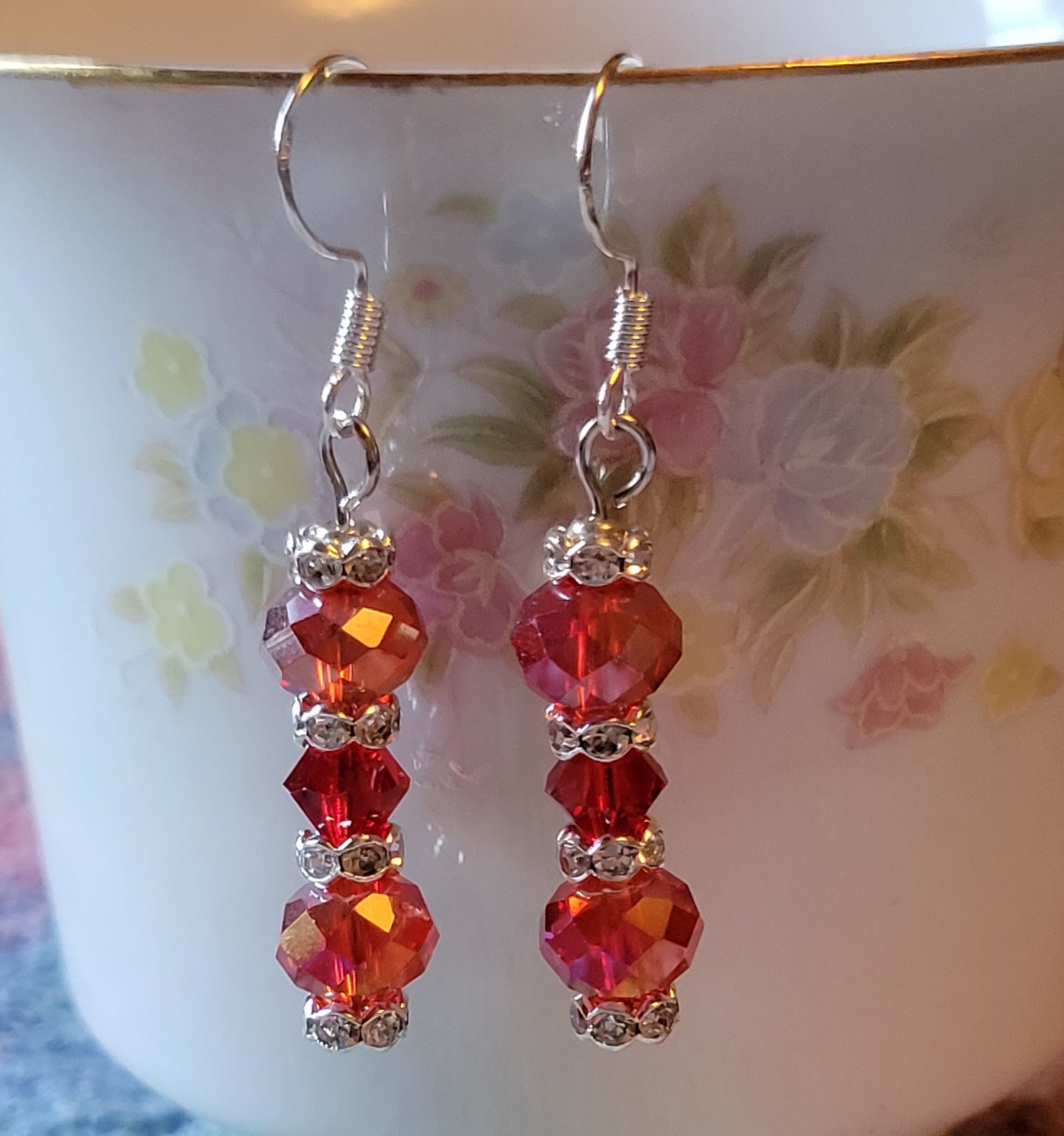 Artisan Elegant RED Crystal Dangle Drop Silver Earrings French Wire