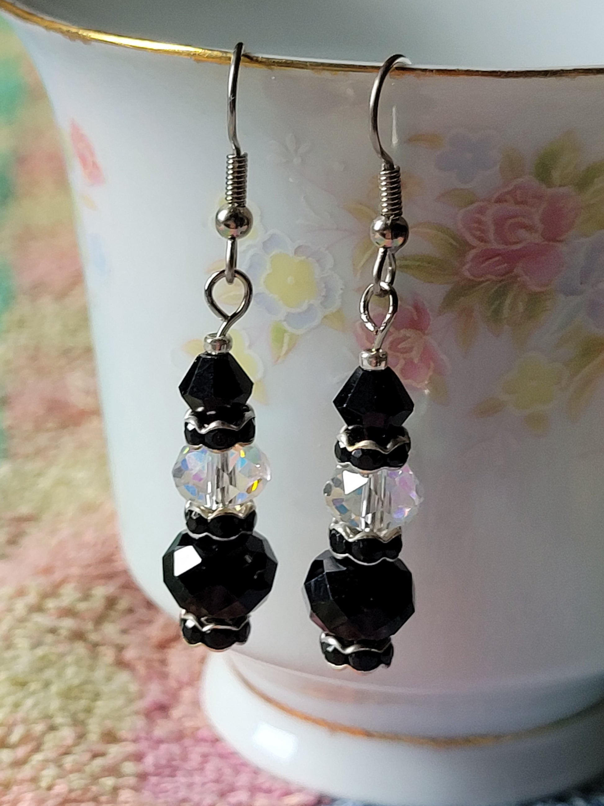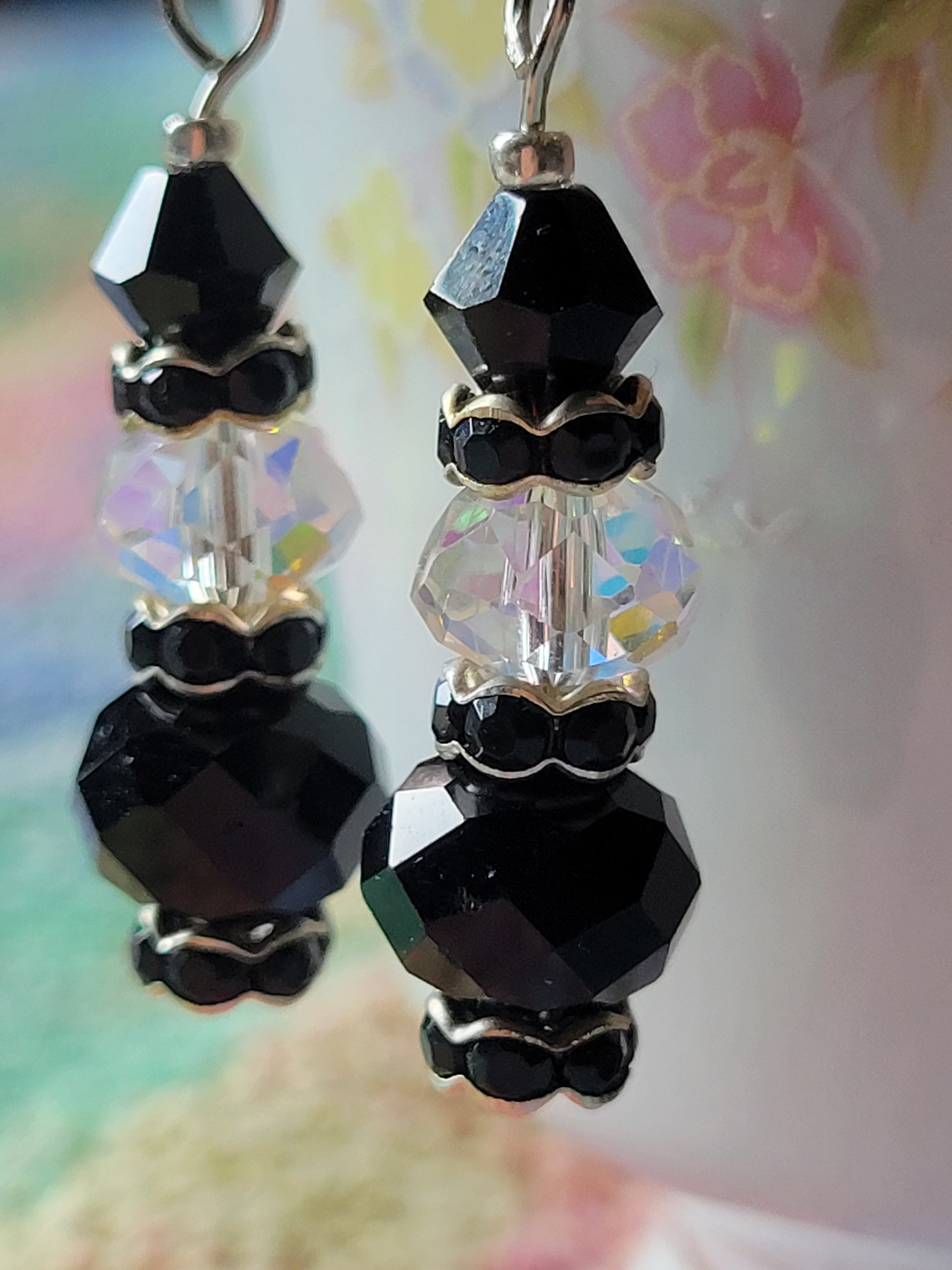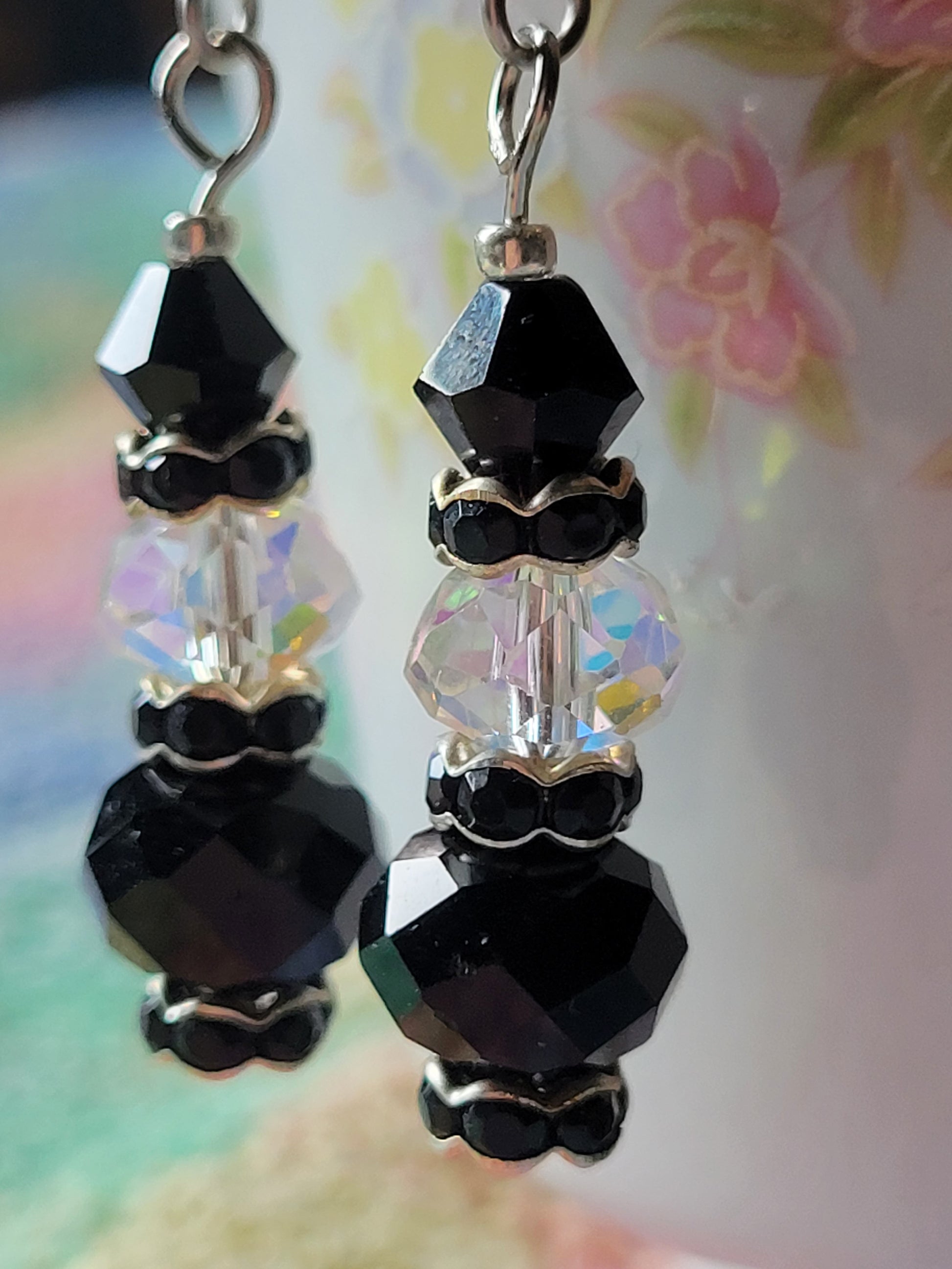 Artisan EXOTIC Black Crystal Dangle Drop Silver Earrings French Wire