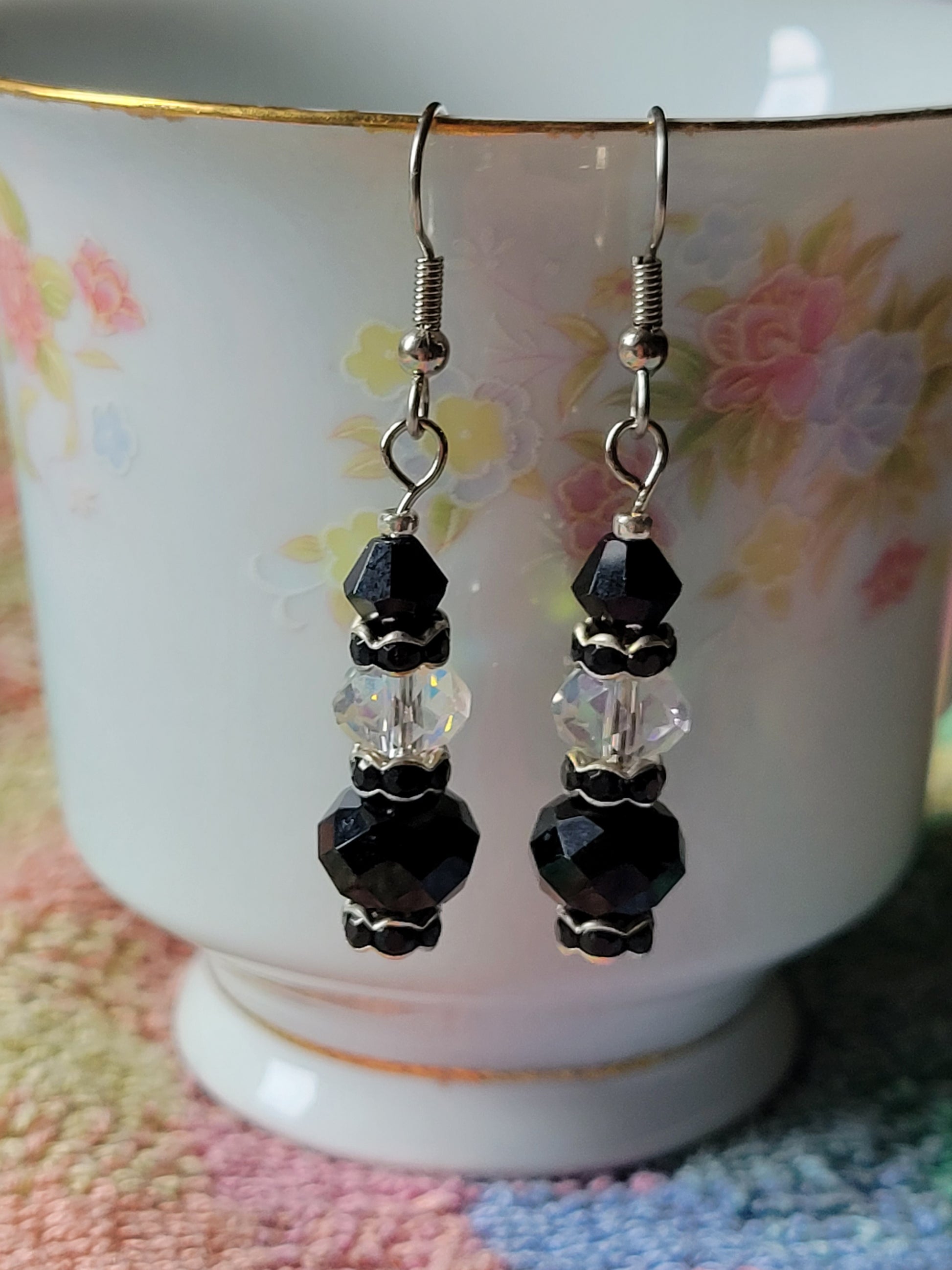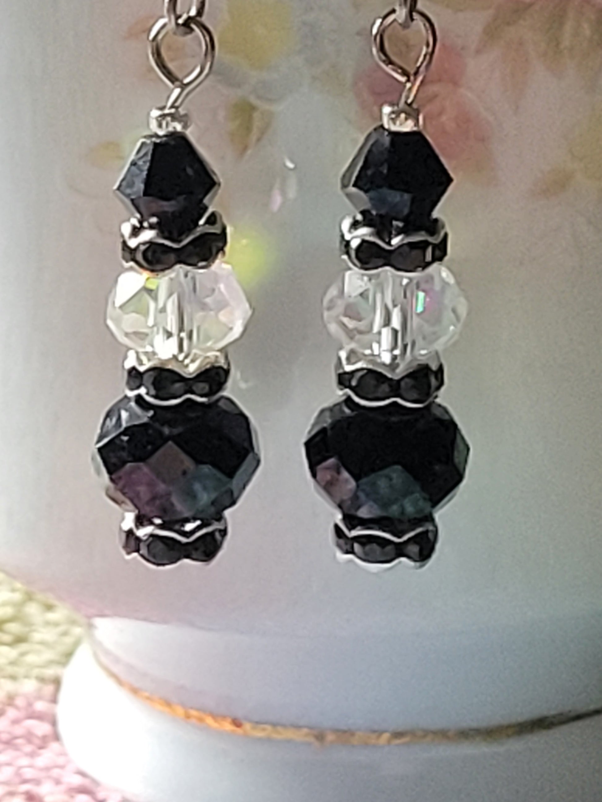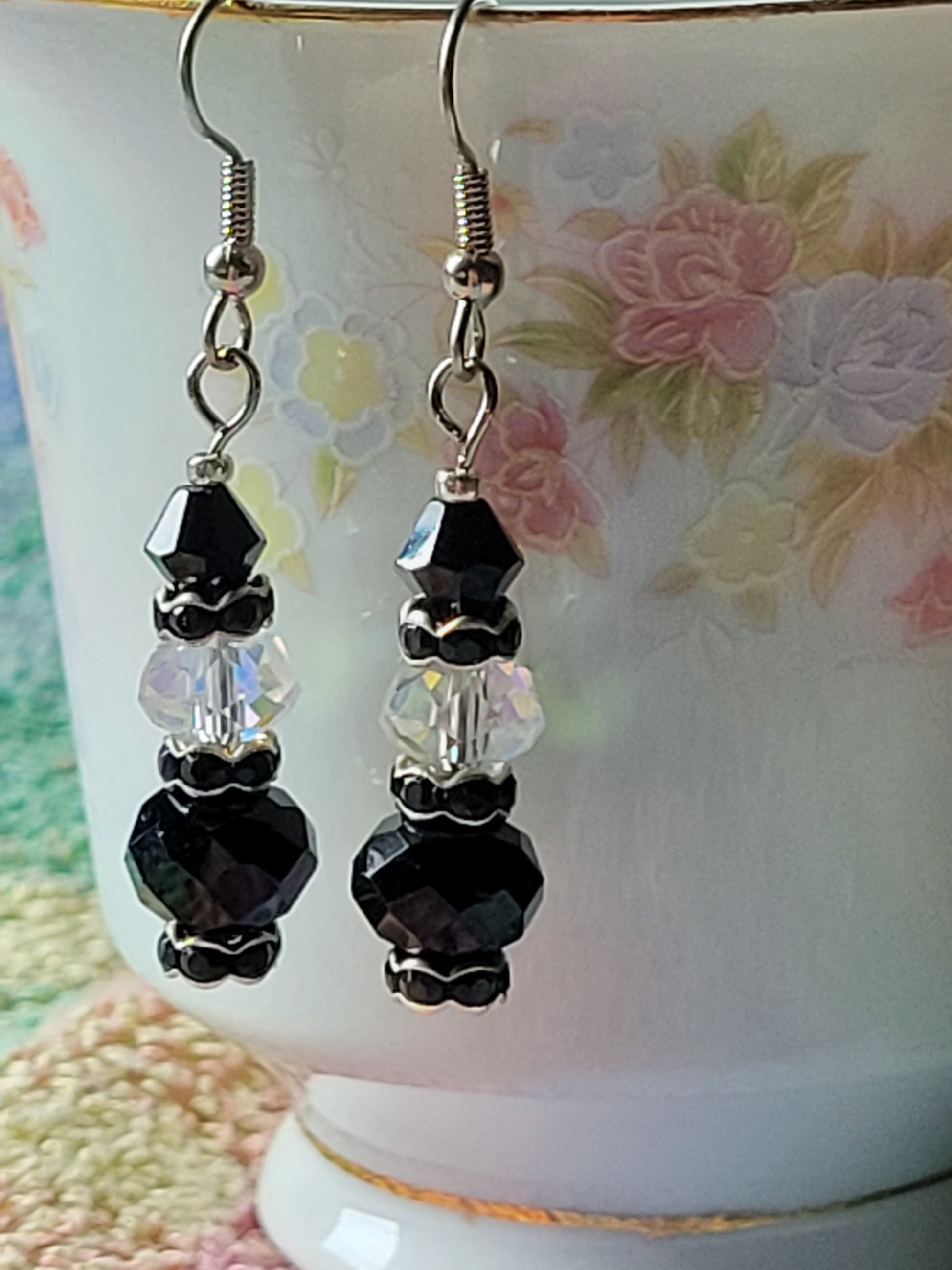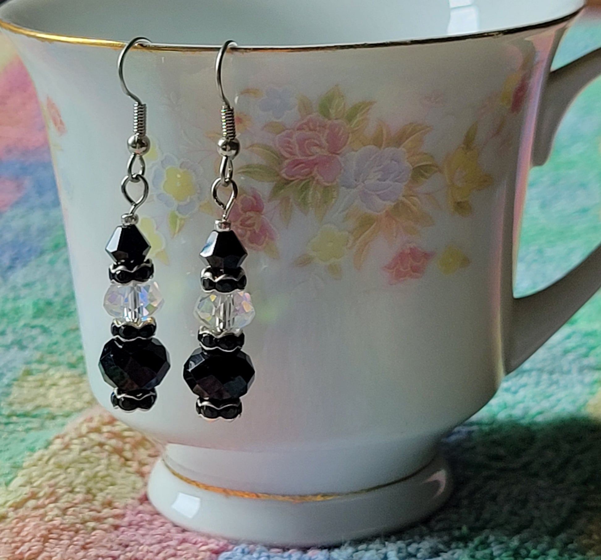 Artisan EXOTIC Black Crystal Dangle Drop Silver Earrings French Wire