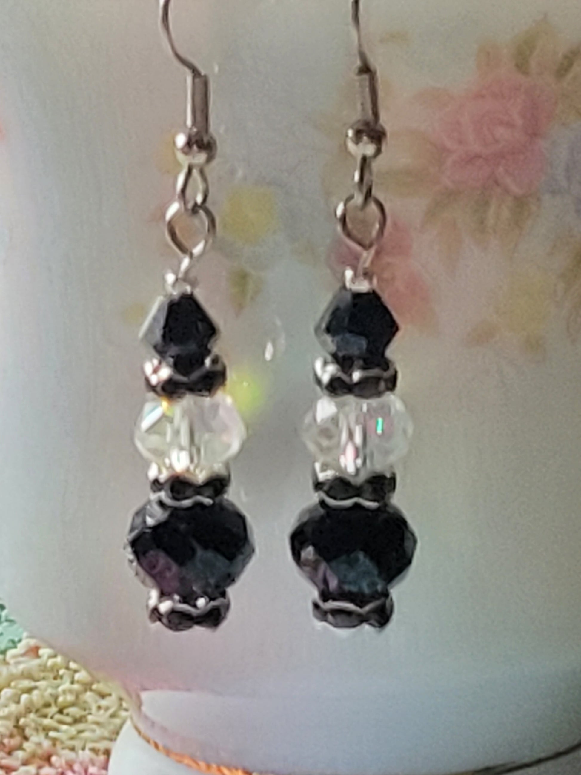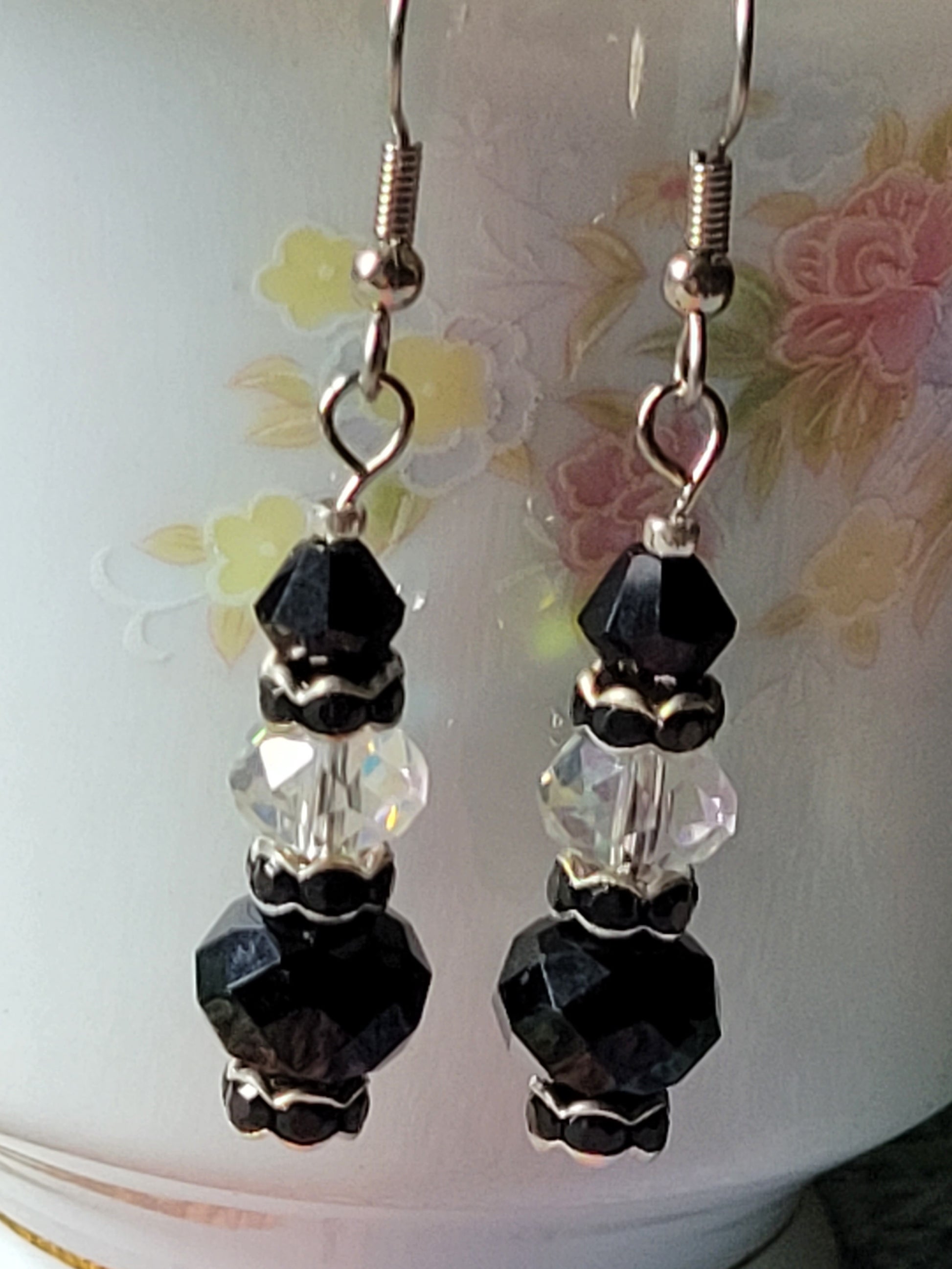 Artisan EXOTIC BLACK Crystal Dangle Drop Silvertone Fashion Earrings French Wire