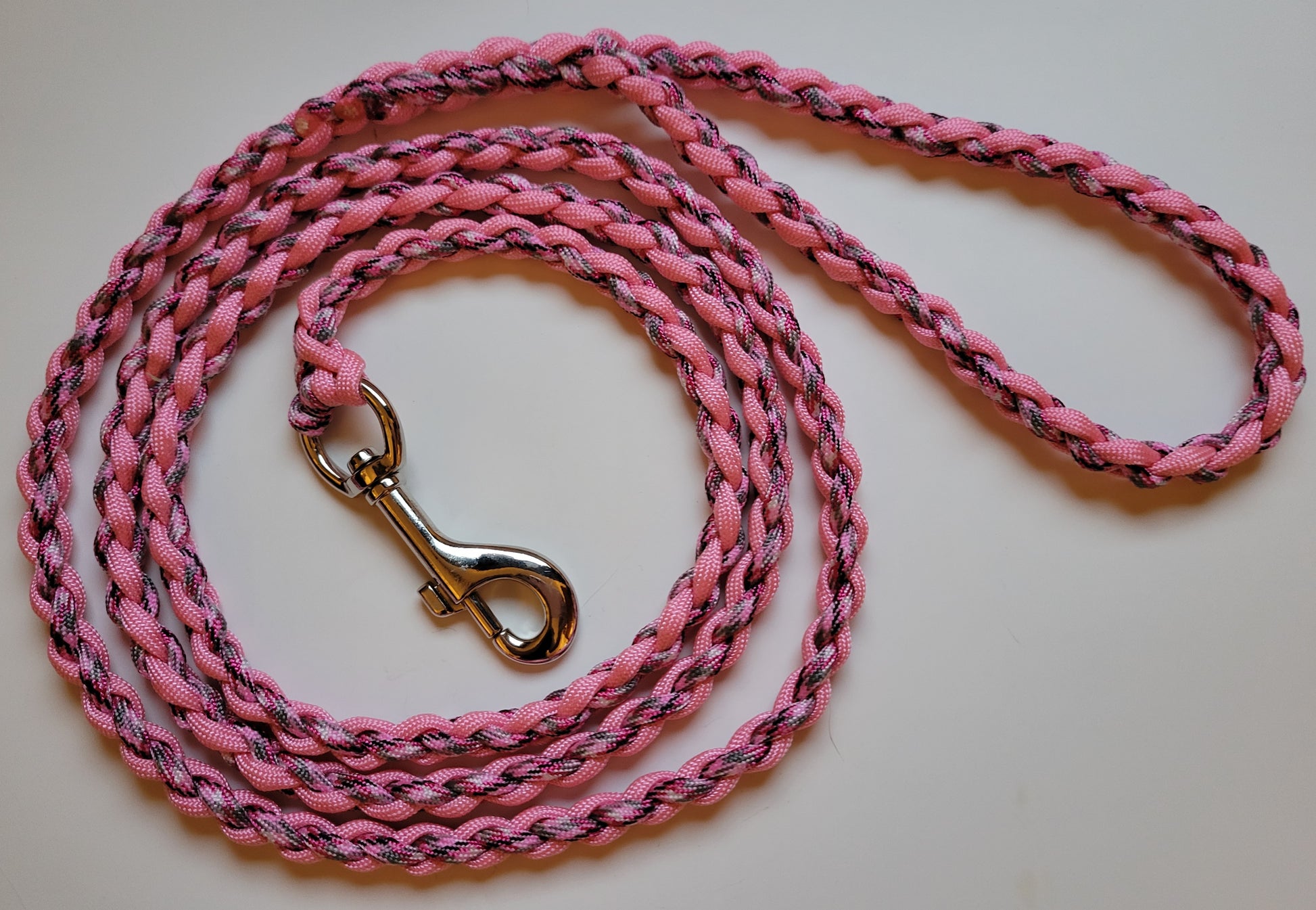 Paracord Braided Dog Leash Lead 5 1/2 ft (Pink Camo & Pink) Med or Lg Dog Training Walking