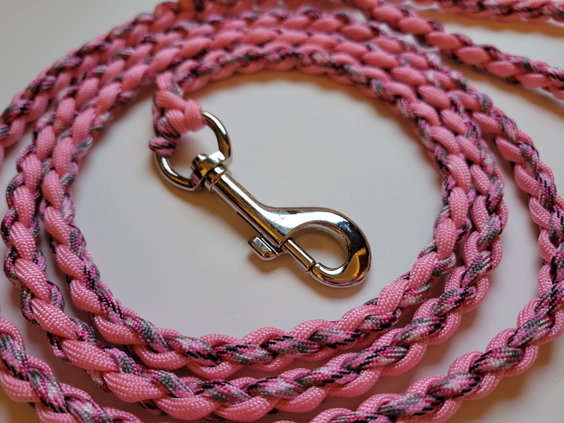 Very pretty Pink Camo and Pink paracord braided dog leash.