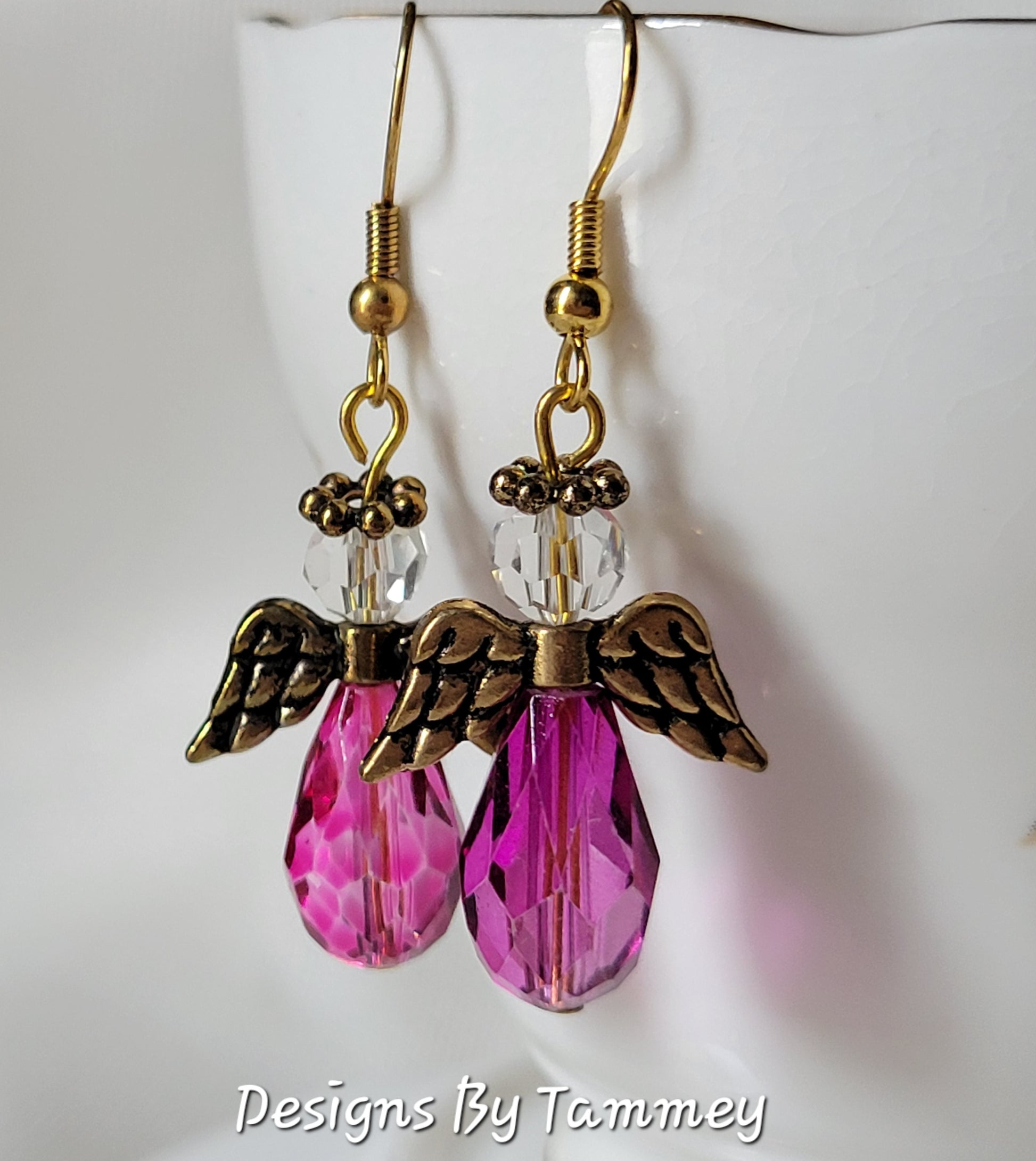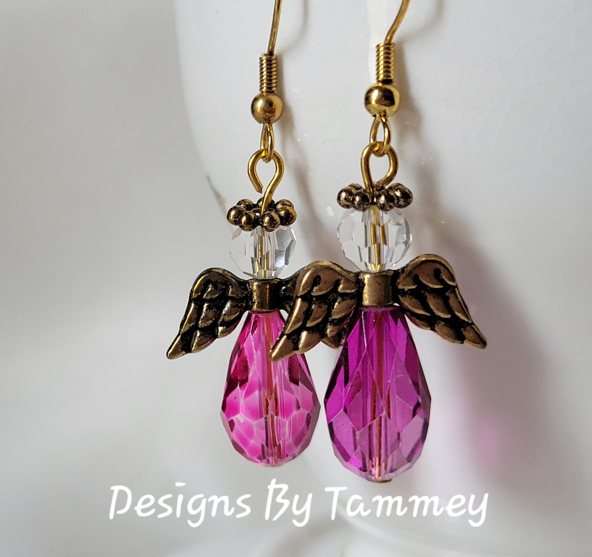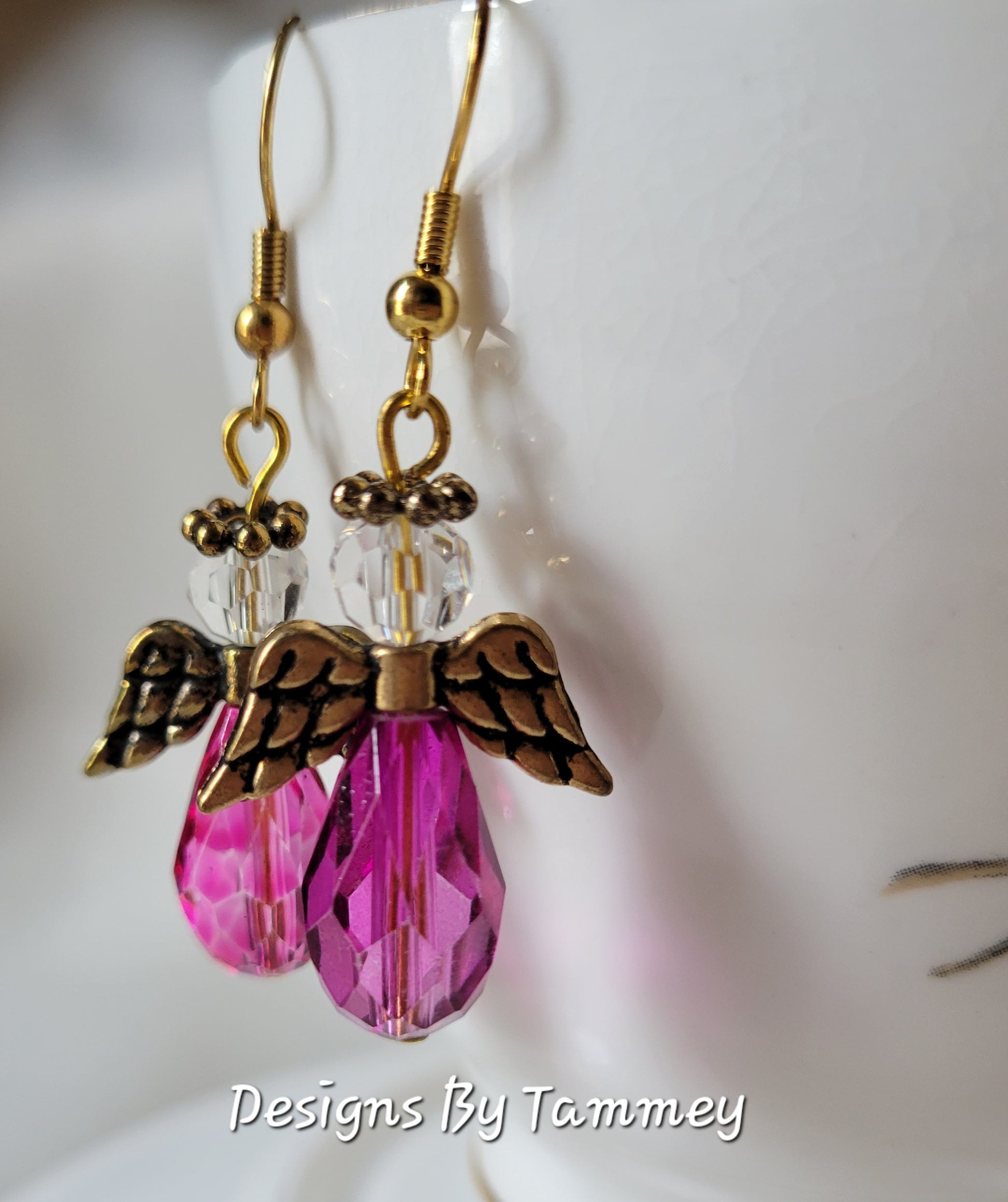 CRYSTAL ANGEL Pink Crystal Dangle Drop Fashion Earrings