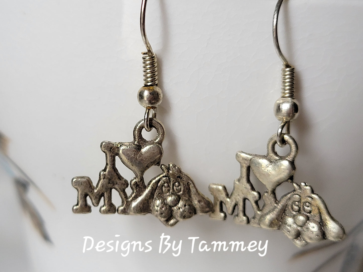 Dog Earrings "I LOVE MY DOG" Dangle Drop Style Fashion Earrings