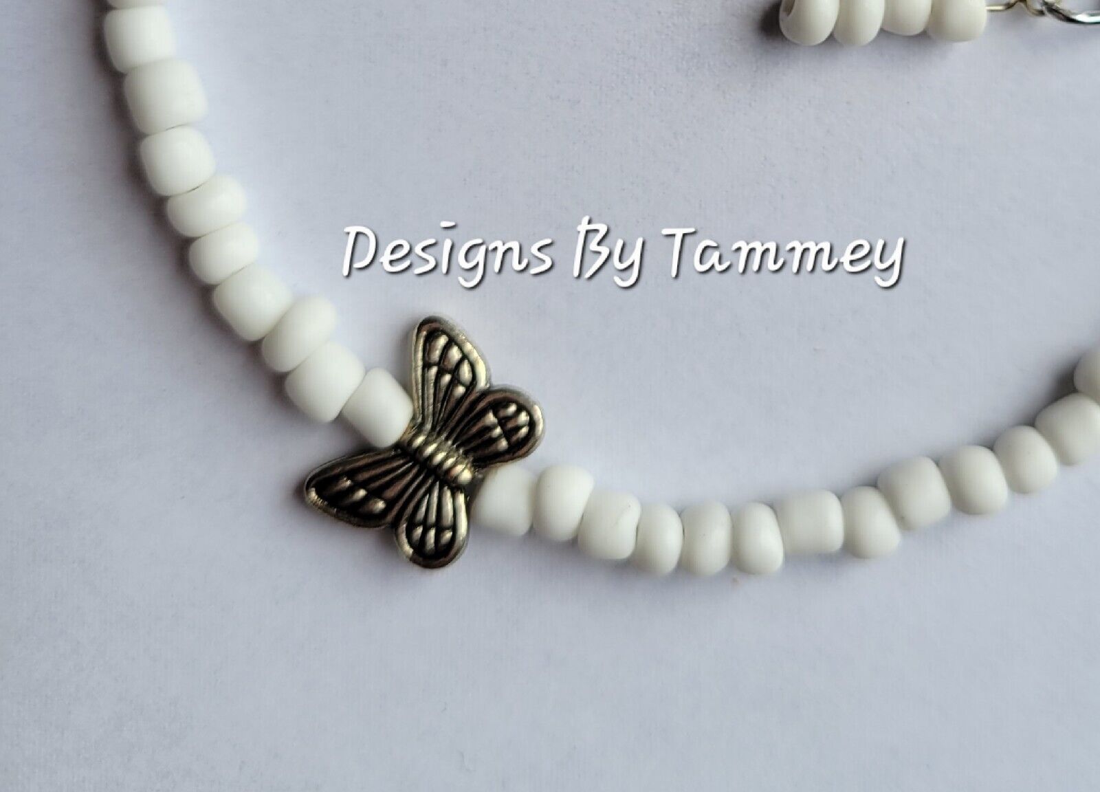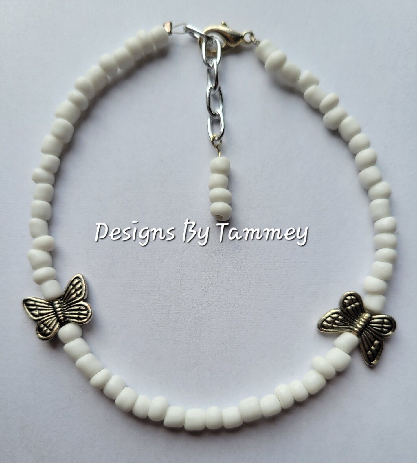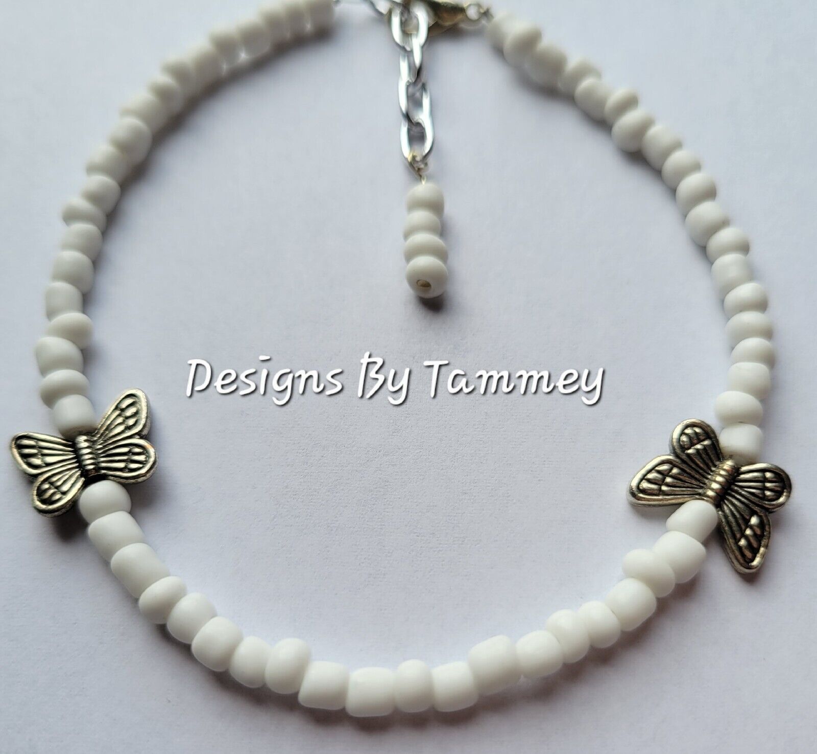 Beaded ANKLE BRACELET White beads and Silver Butterfly ANKLET Beachwear