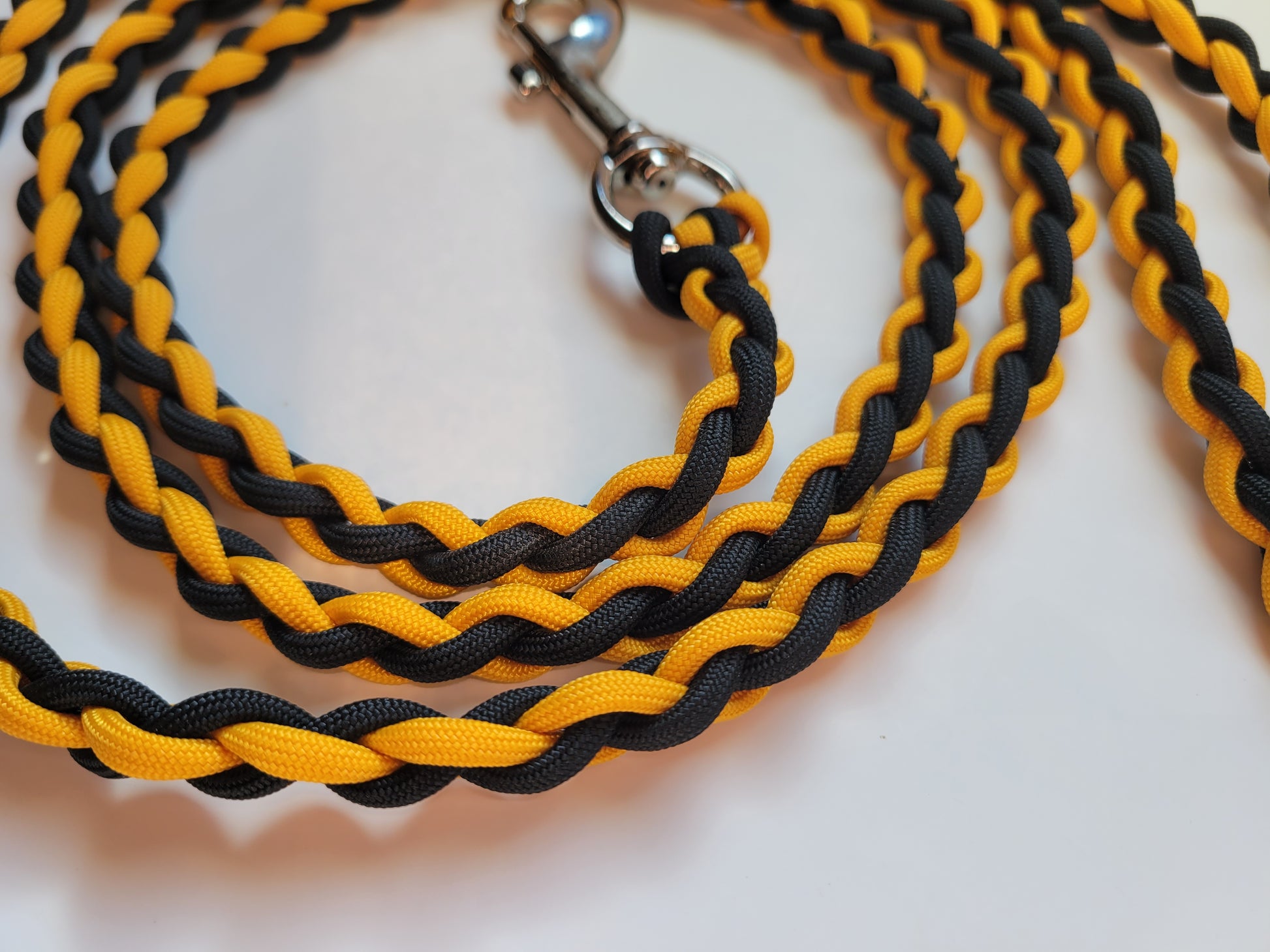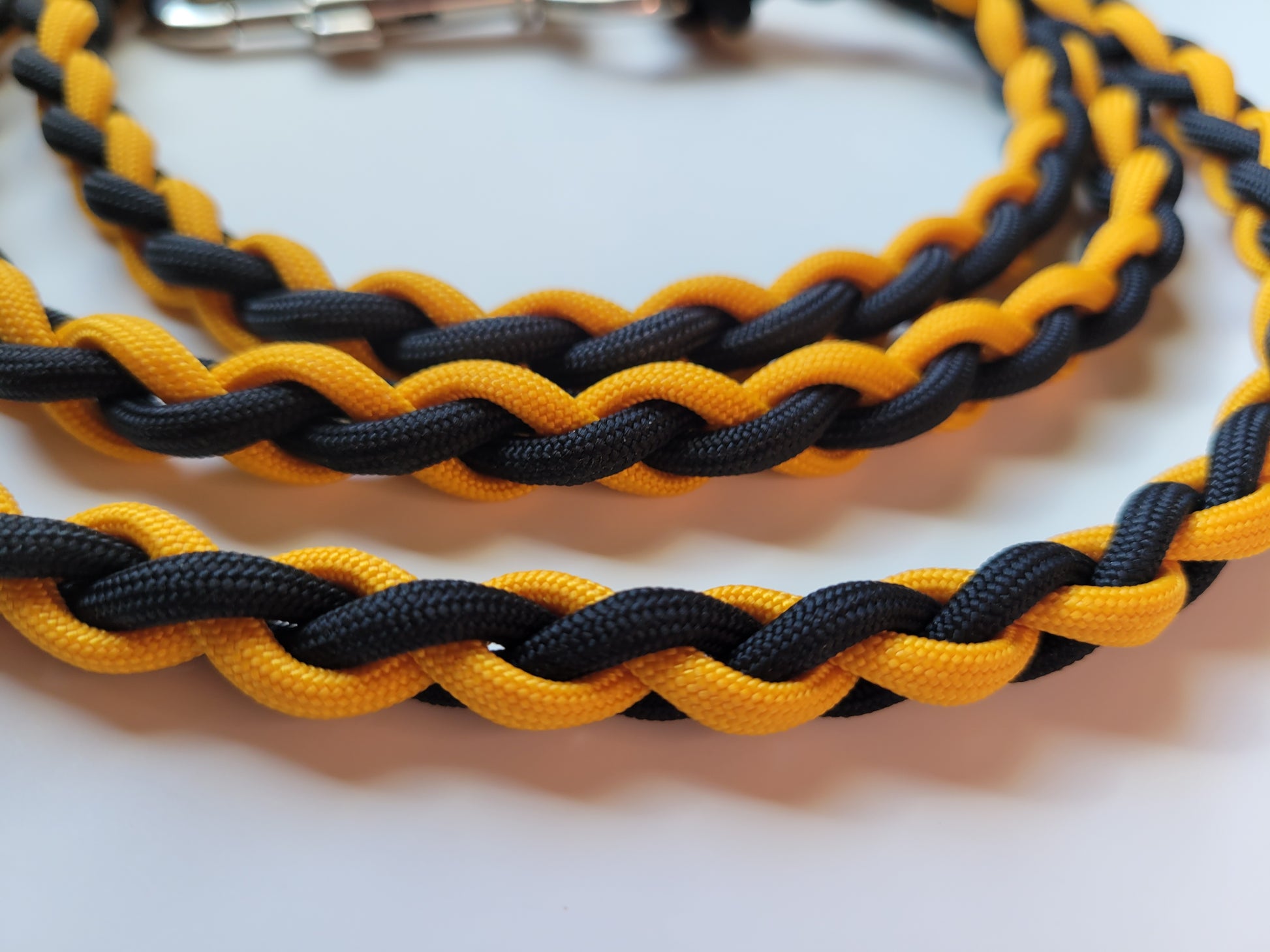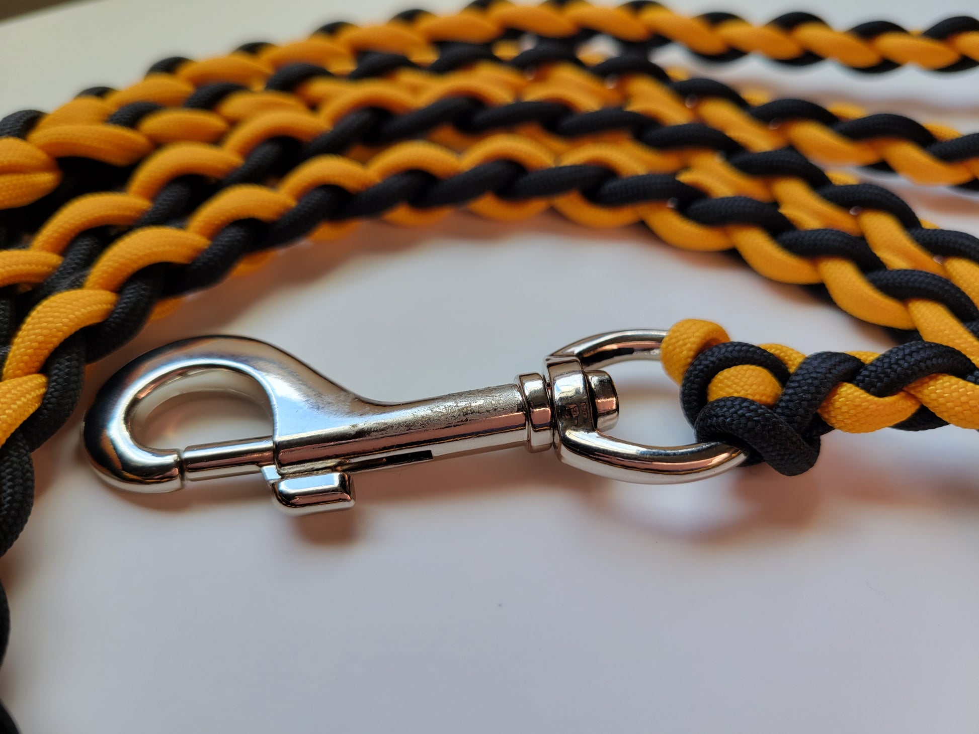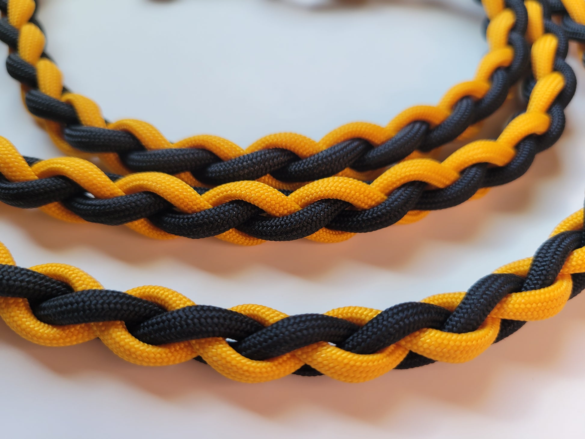 Paracord Braided Dog Leash Lead 5 1/2 ft (Black & Gold) Med or Lg Dog Training Walking
