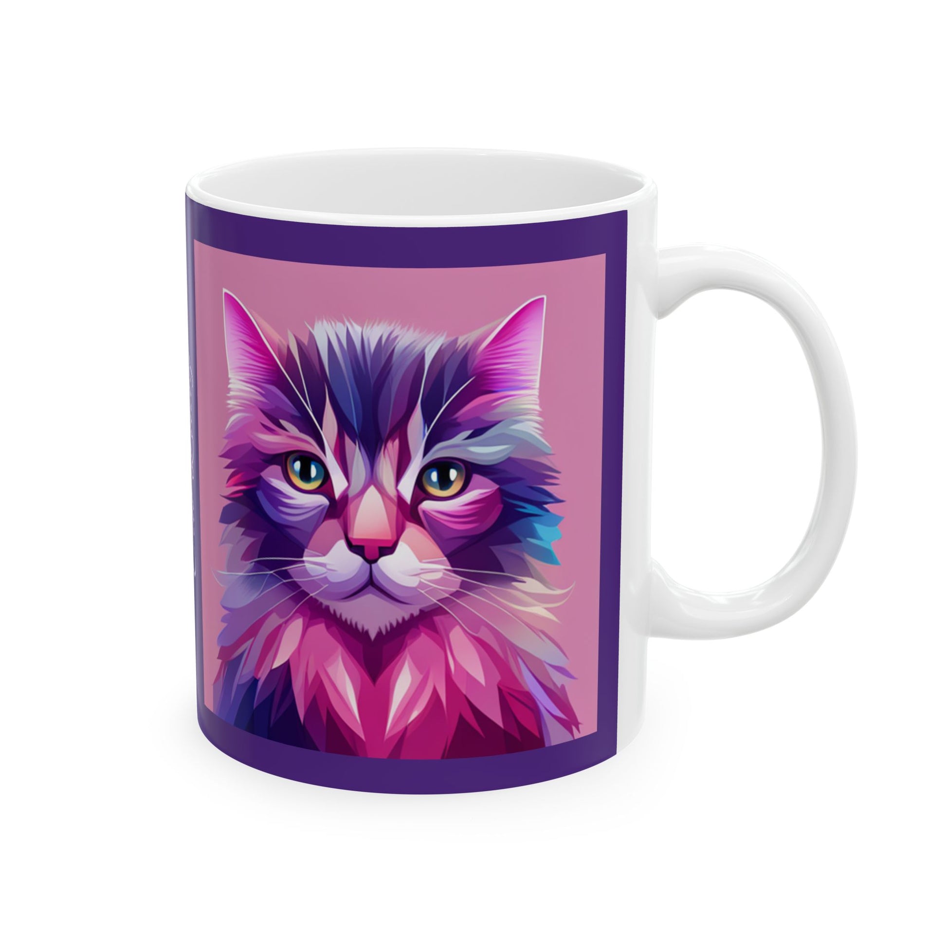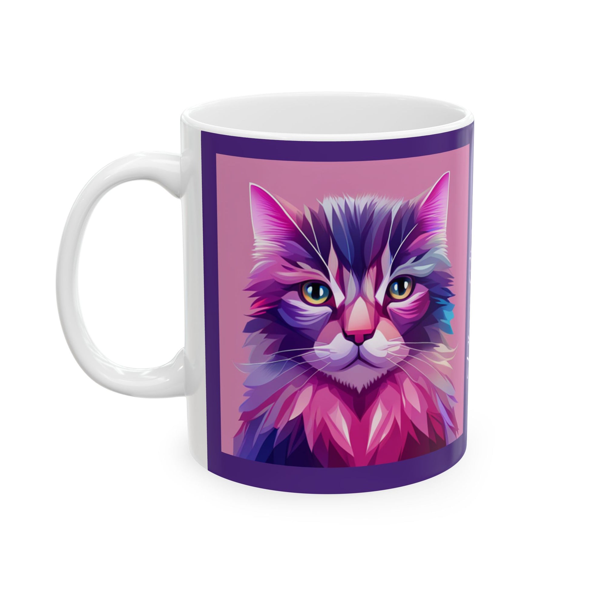 Warm-up with a nice cuppa out of this customized ceramic Plum Crazy Cat Lady coffee mug.