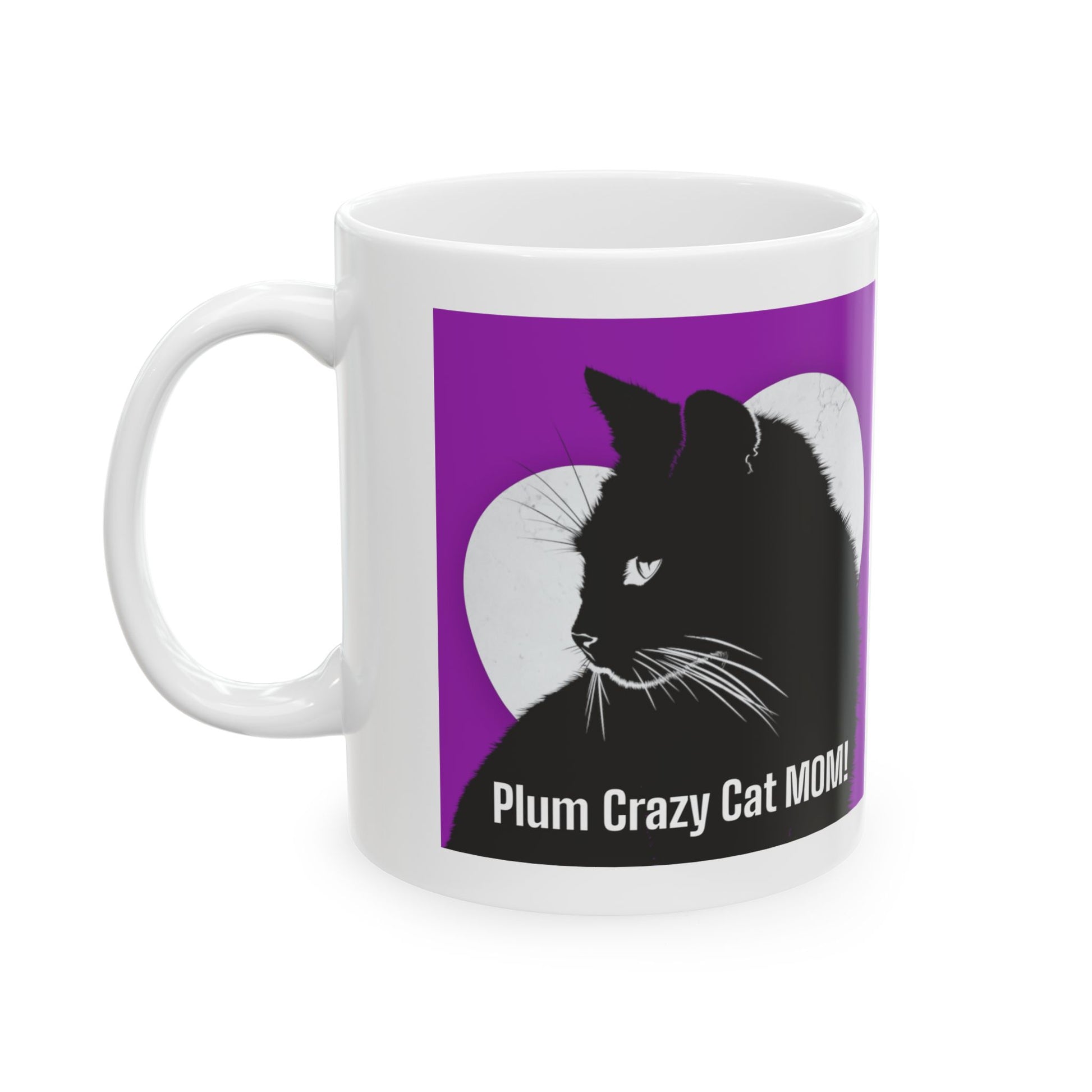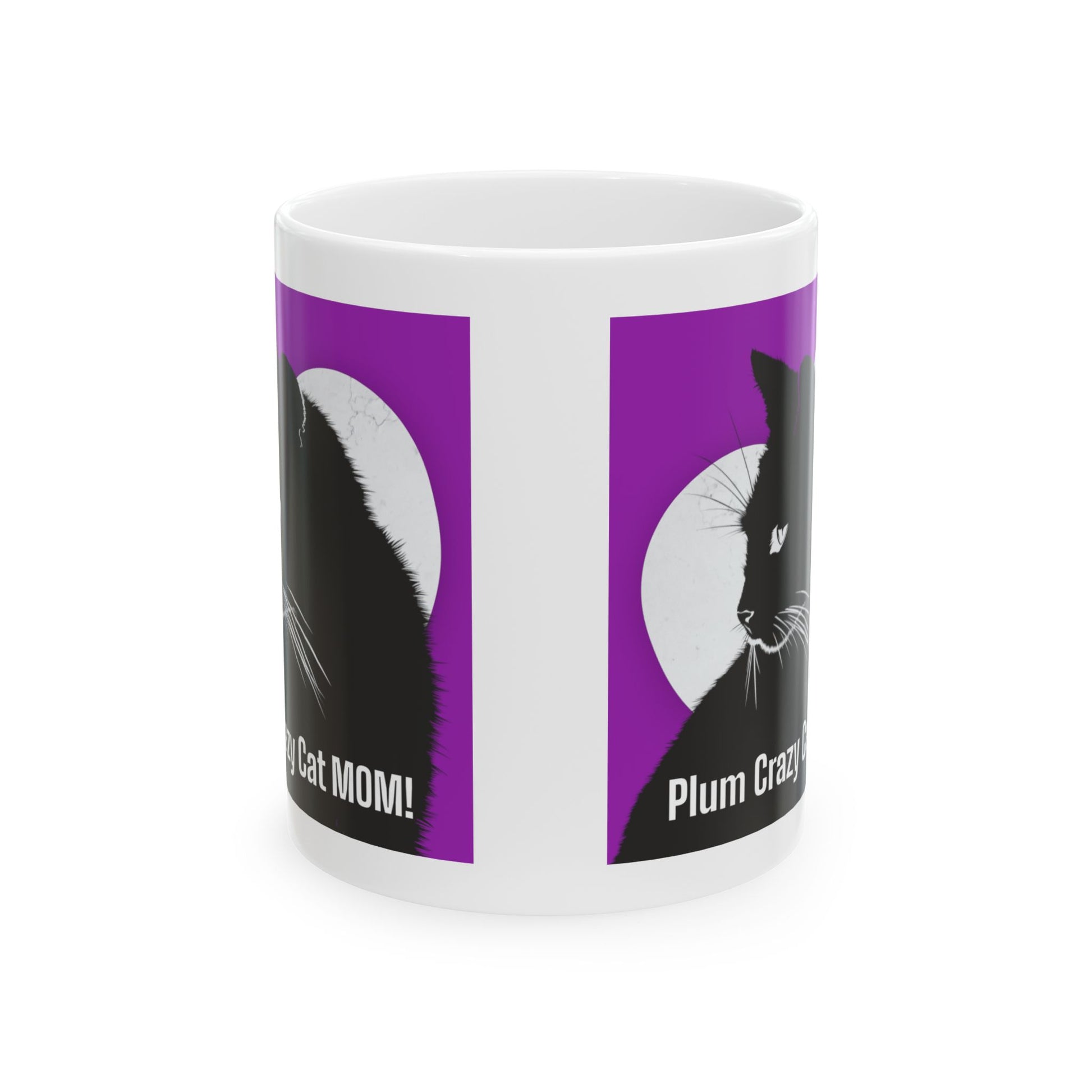 Plum Crazy Cat MOM! Ceramic Coffee Mug 11oz