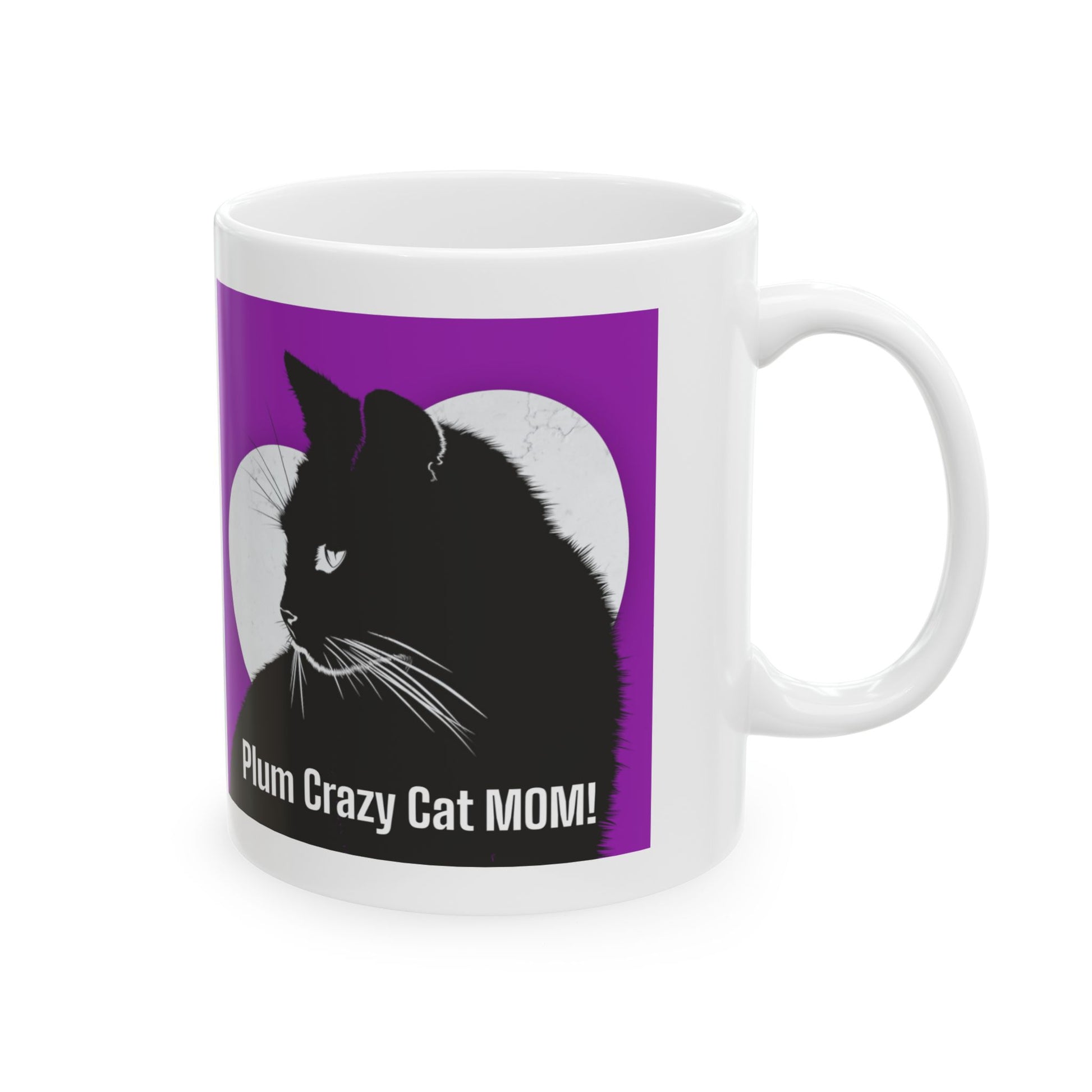 Plum Crazy Cat MOM! Ceramic Coffee Mug 11oz