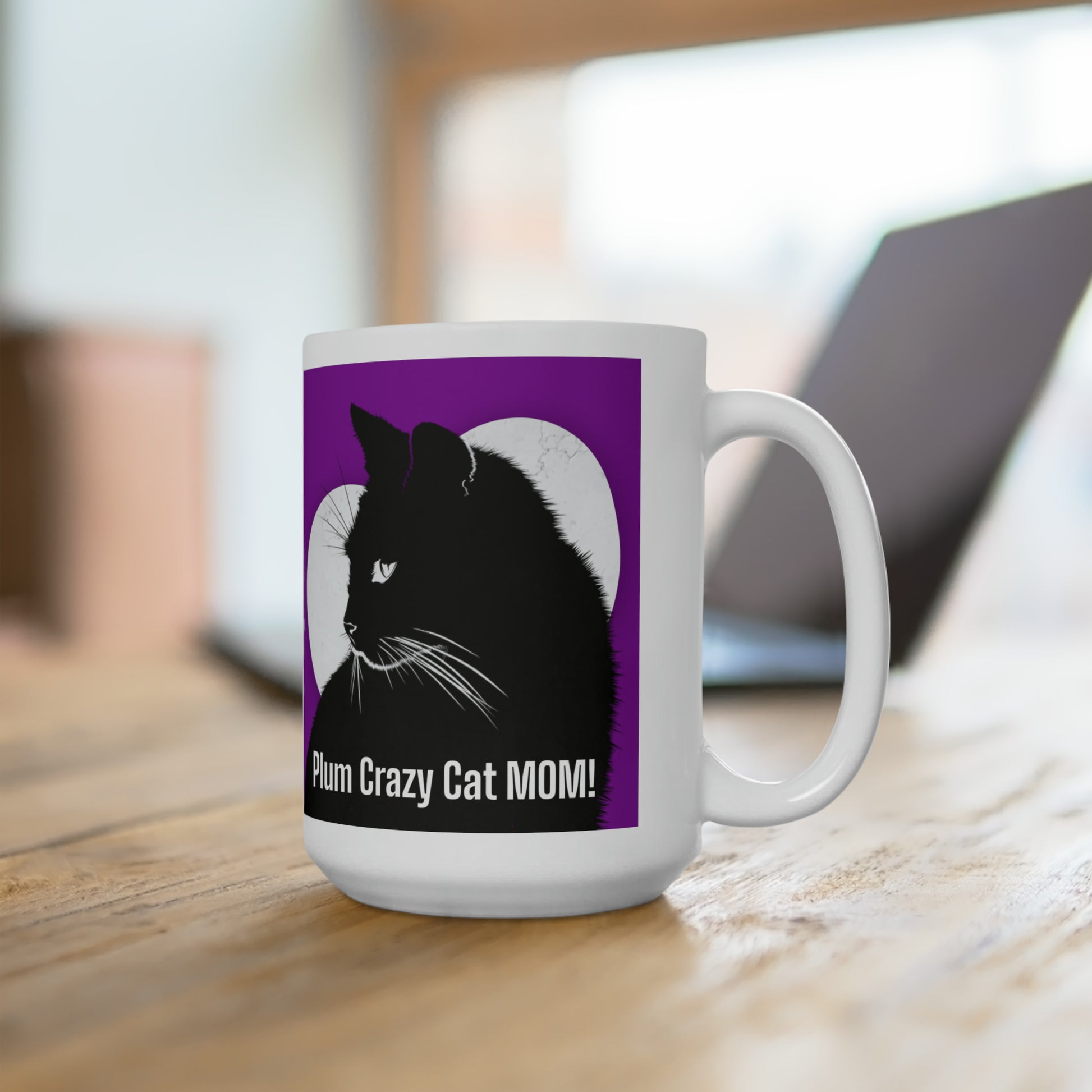 Plum Crazy Cat MOM! Ceramic Mug 15oz