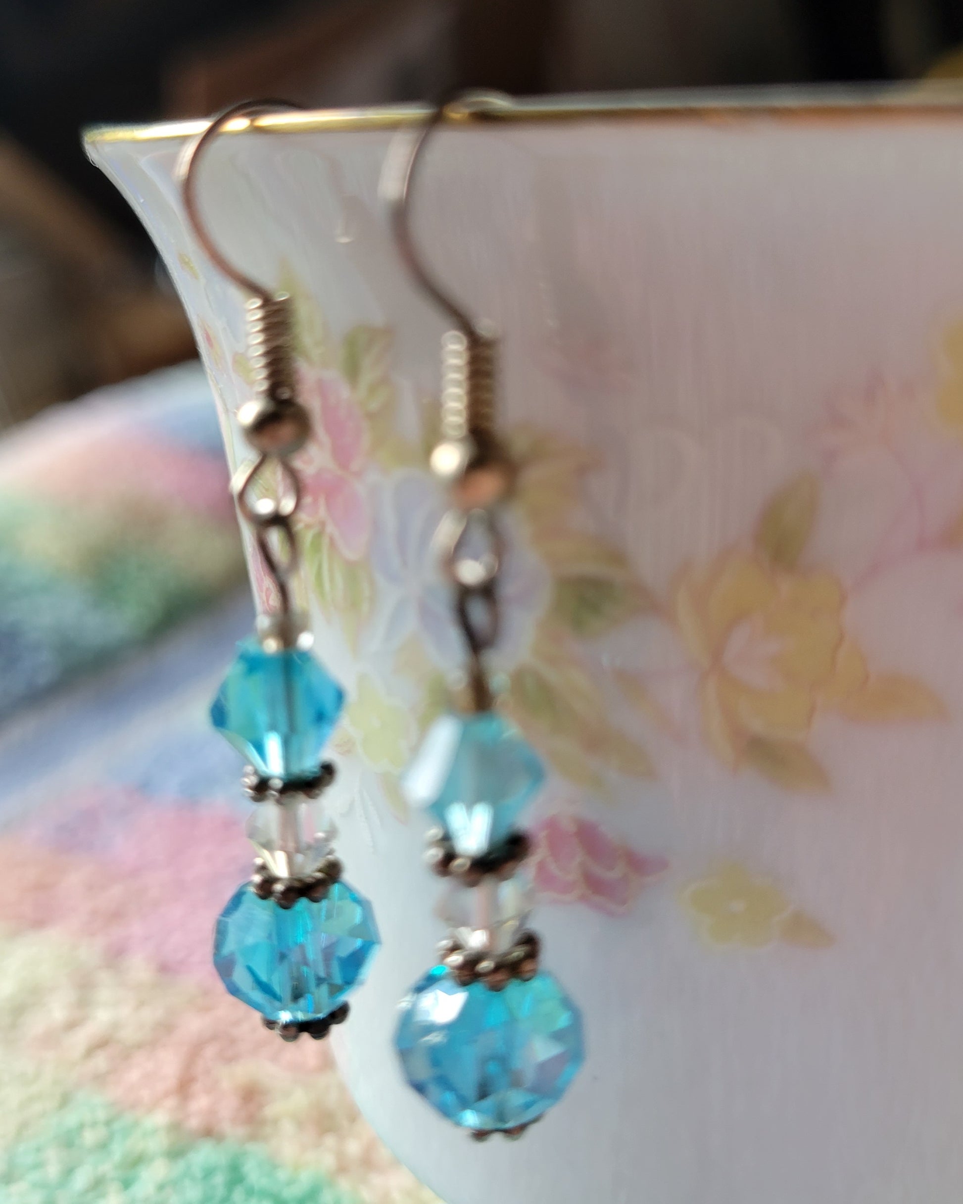Very pretty Shiney Turquoise Crystal beads on French wire