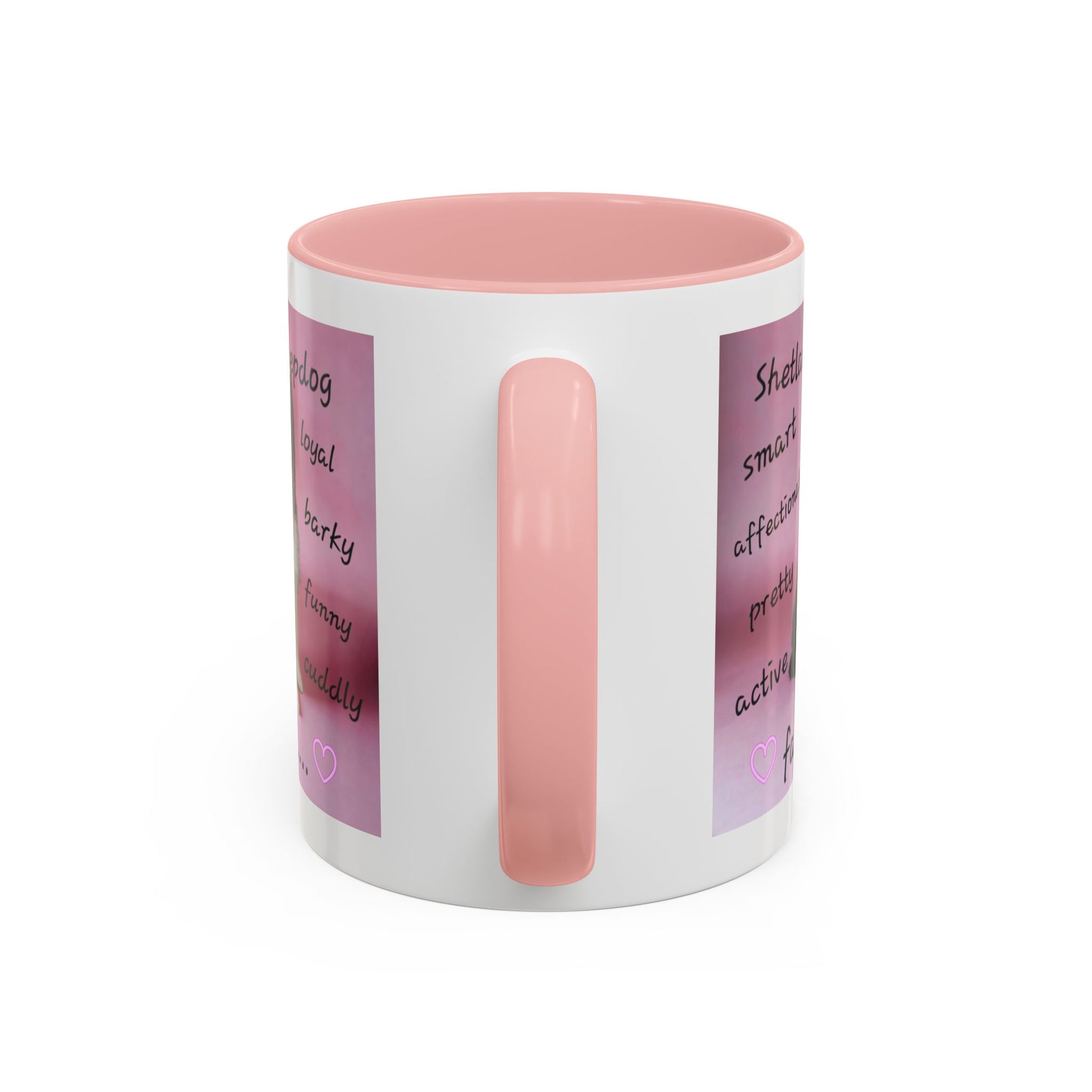 Add some color to your routine with this pretty Sheltie two-tone, custom accent coffee mug. This 11oz mug features an accented C-Handle that is comfortable to use, as well as an accented interior to add more contrast and character.