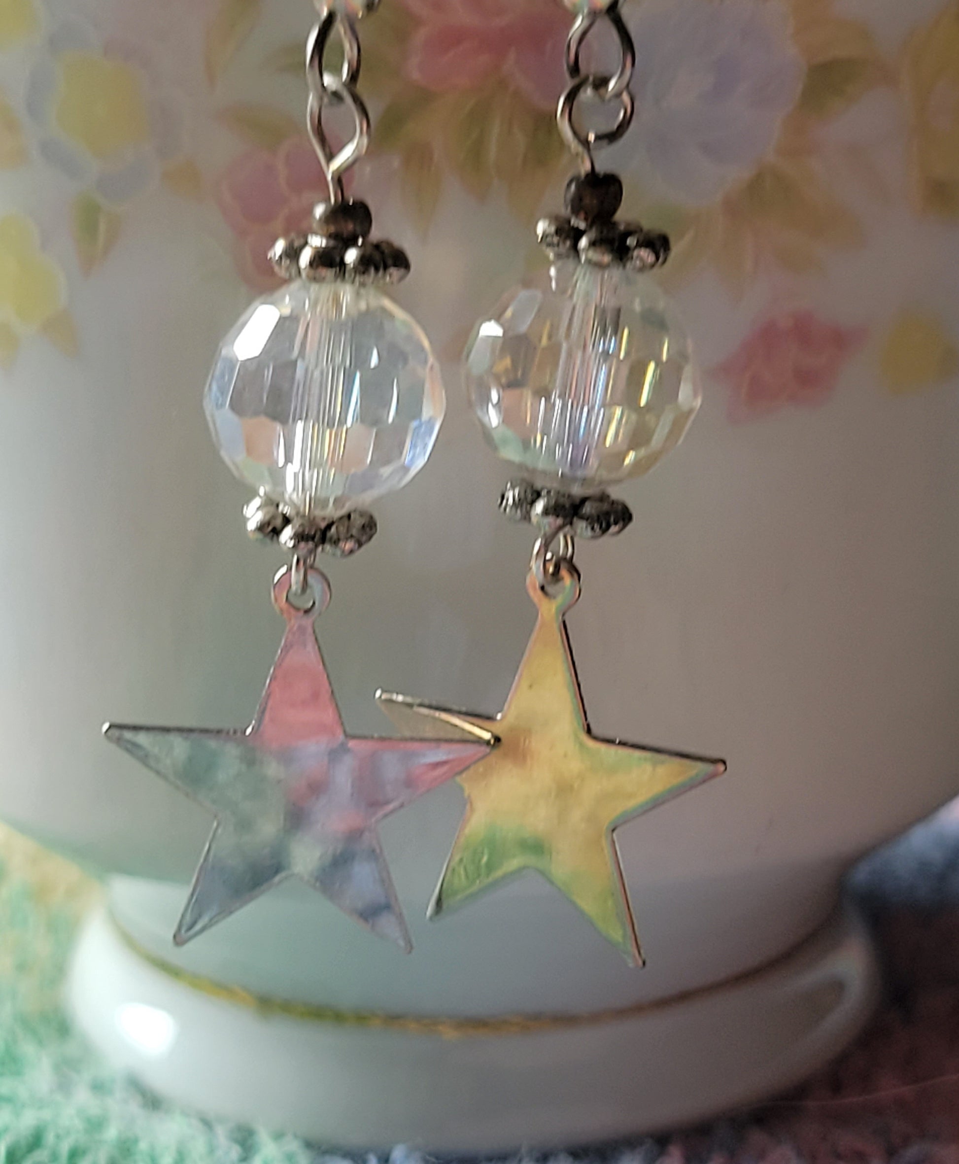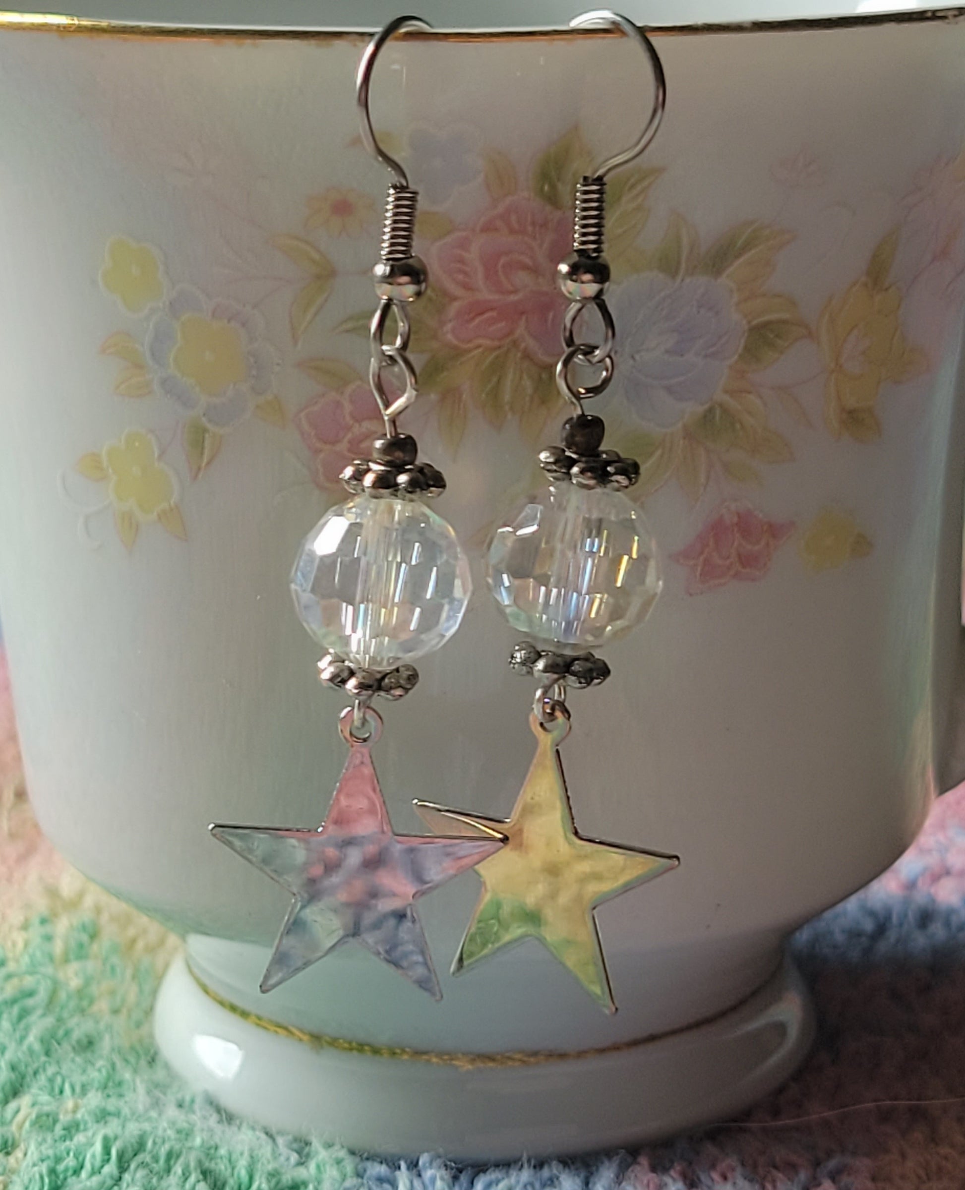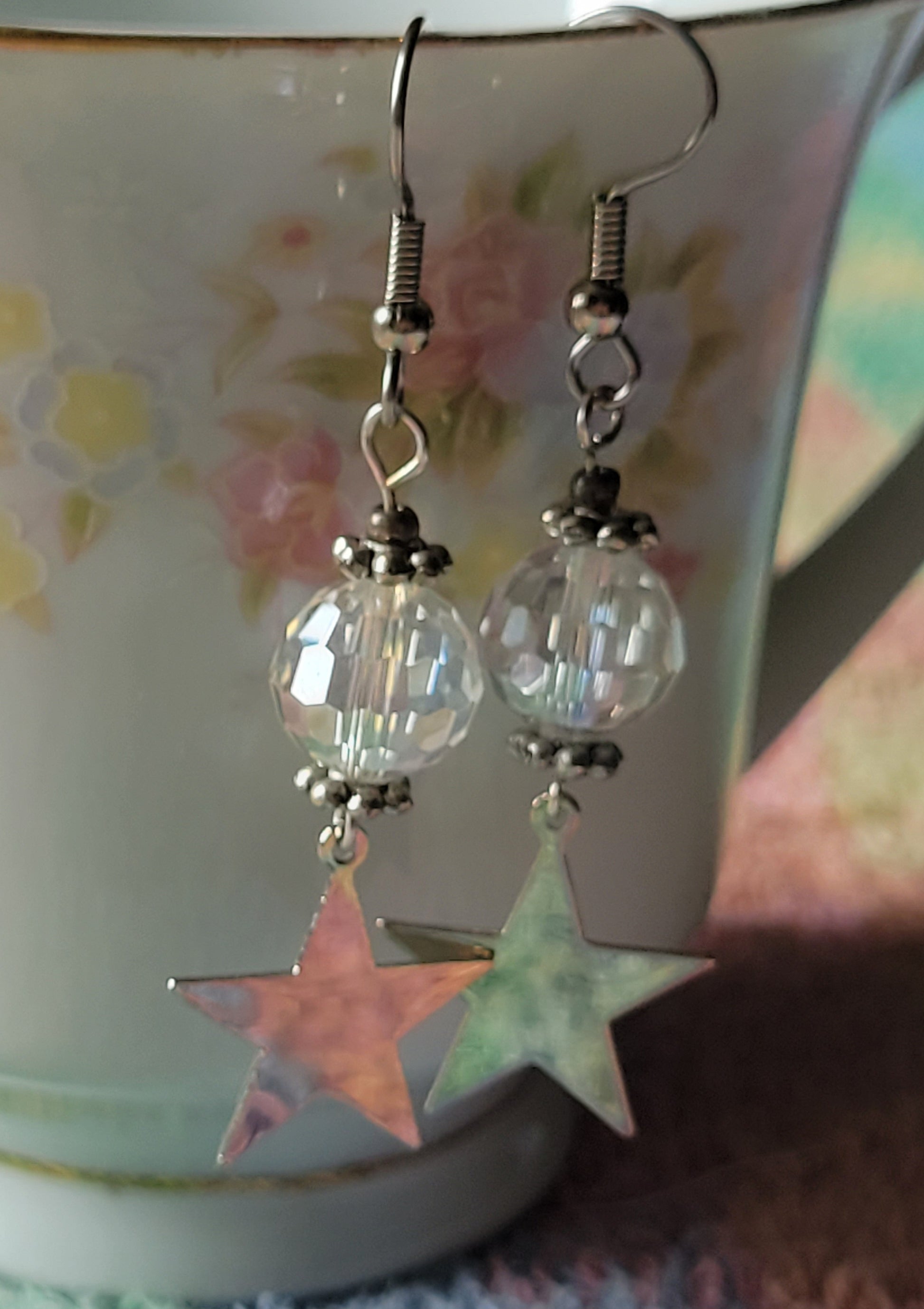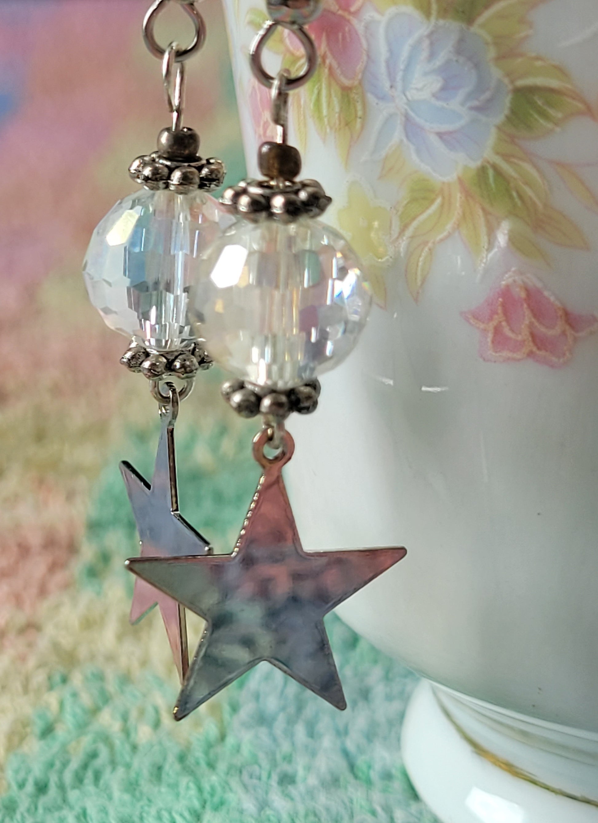 Silver STAR Clear CRYSTAL Long Dangle Drop Pierced Silvertone Fashion Earrings