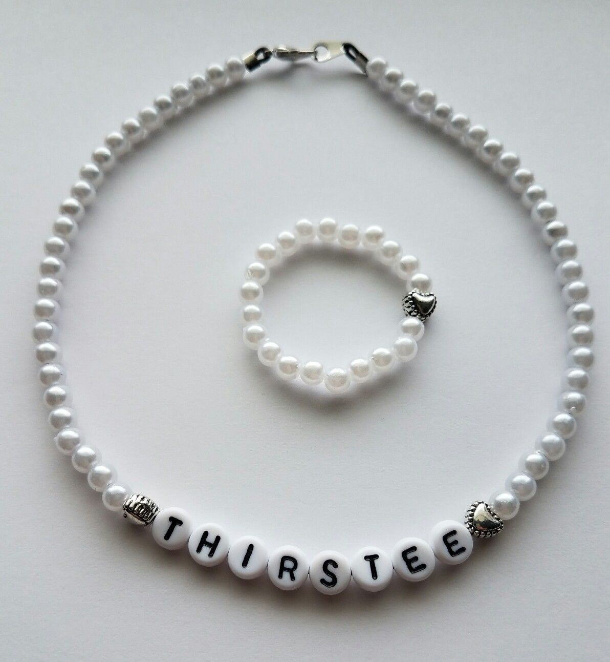 Handmade "THIRSTEE" Doll Name Necklace Set