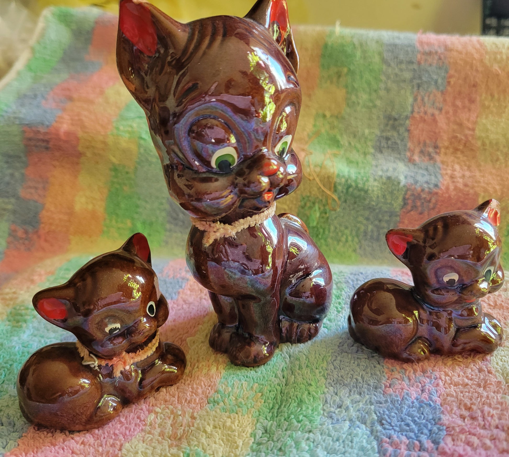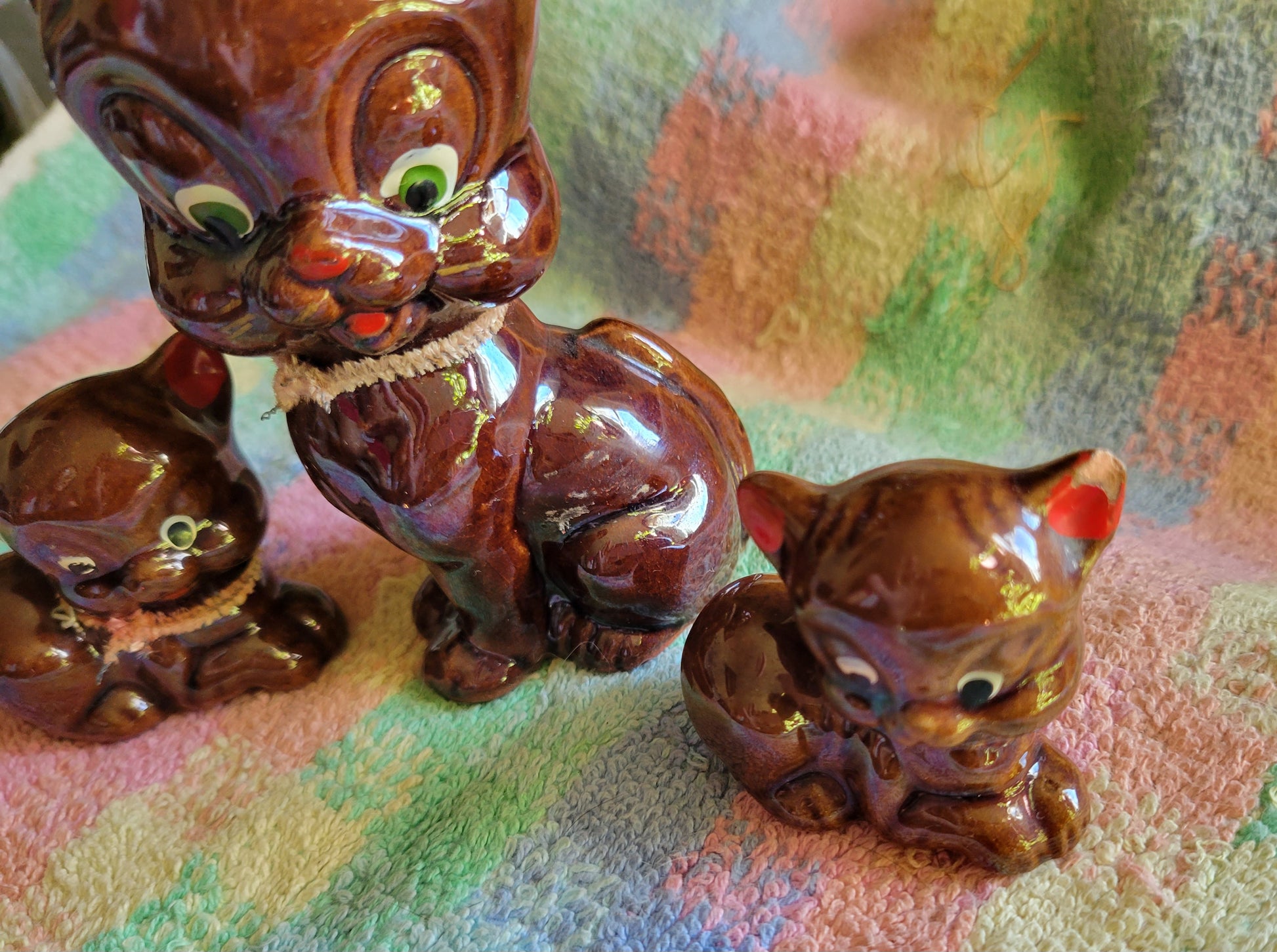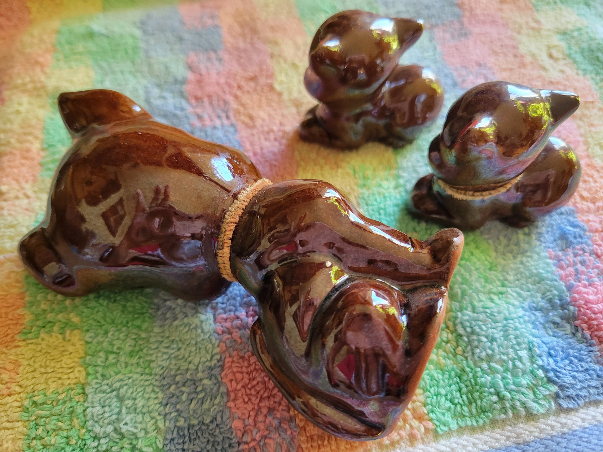Three Little Pigs Knick knacks Vintage 1950s Japan Brown Glaze Drip Redware