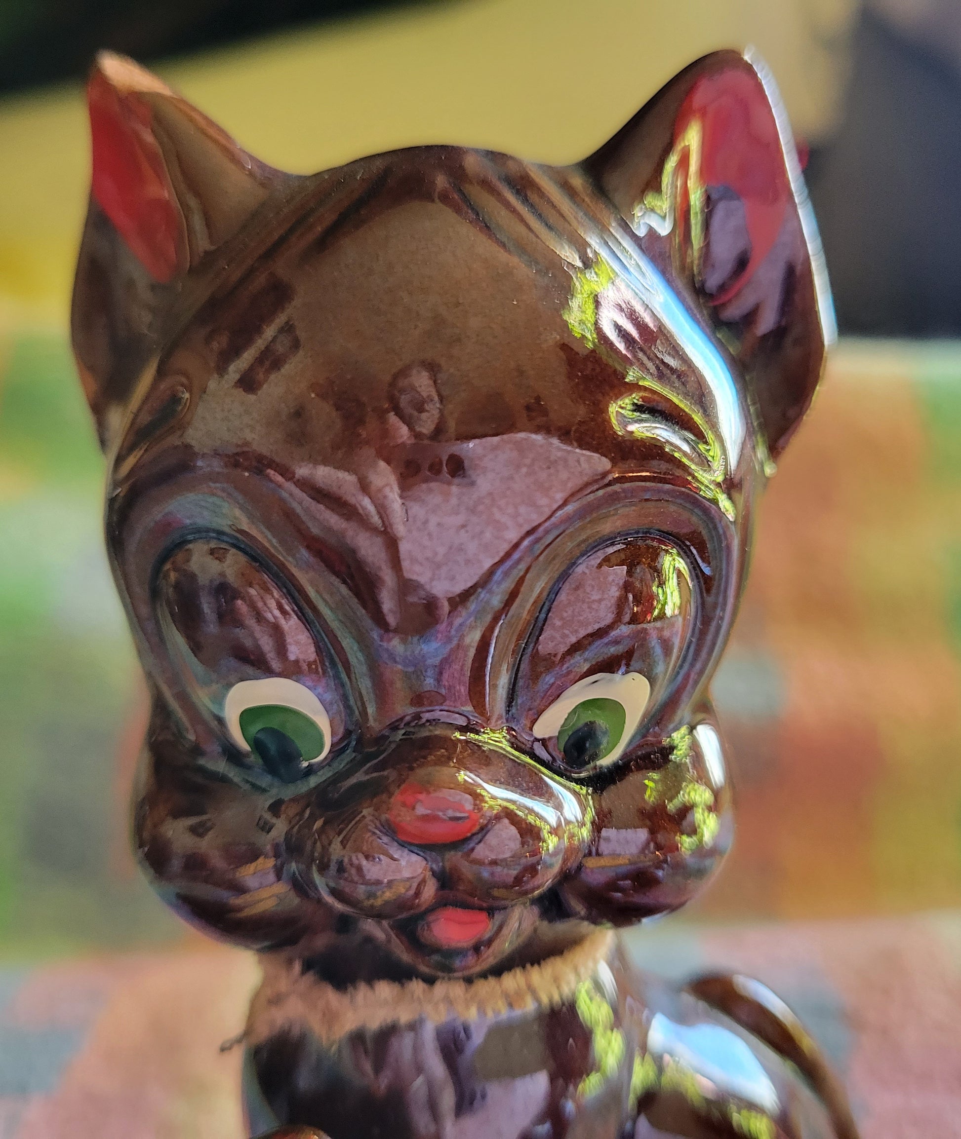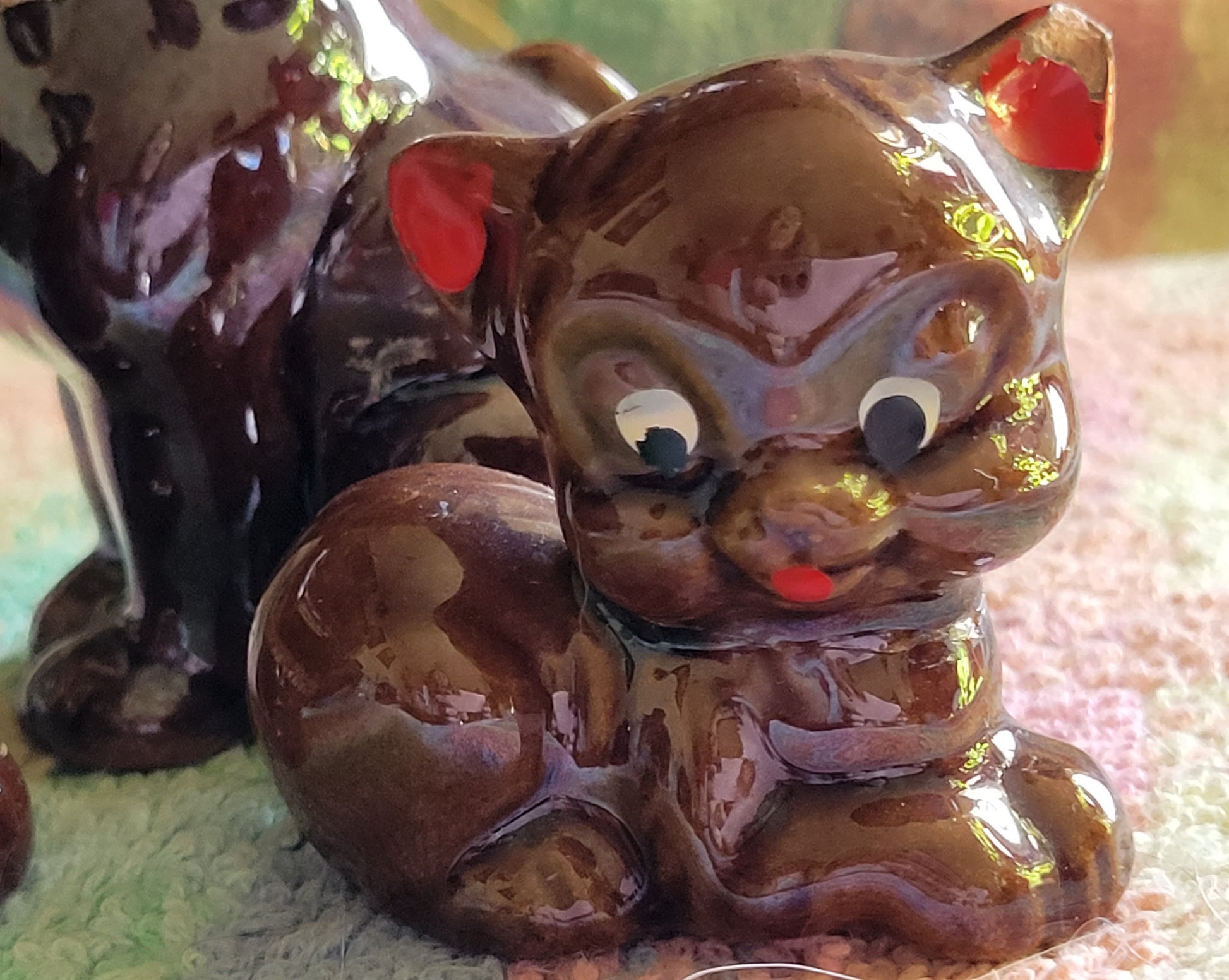 I try to show close ups of this. I usually try to avoid placing items with flaws but these little Pigs are so unique I just think it ads character on this vintage item. I believe they would be from the 1950s or early 60s. You decide!